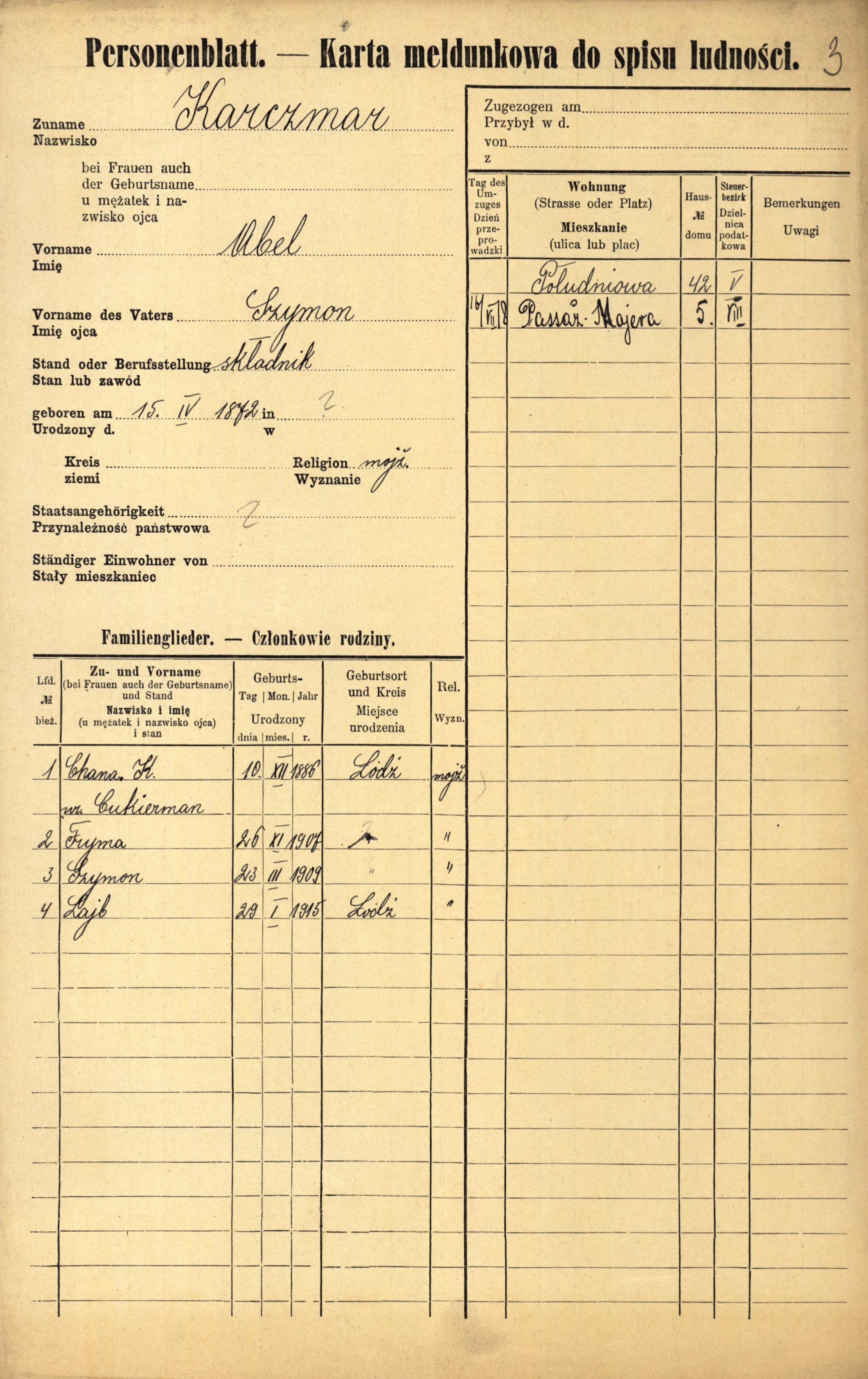| Karczmar | אבל | 1879 | Lodz, פולין | רשימת אסירים בגטו לודז' |