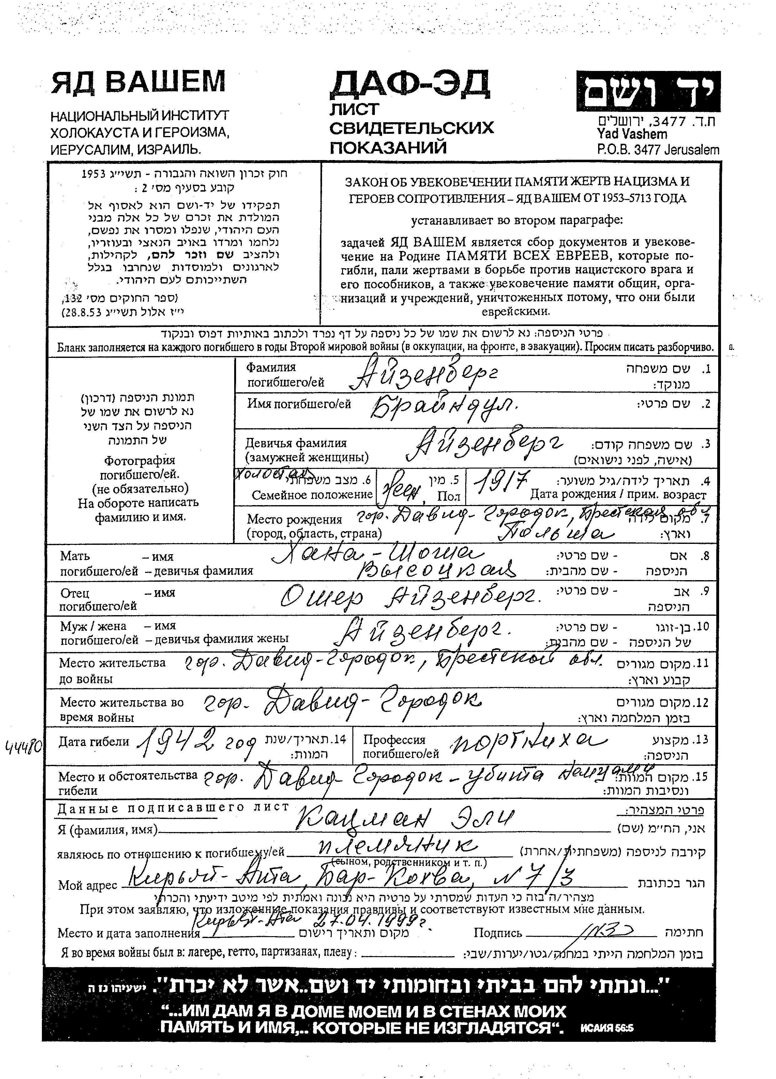 יד ושם - המפעל להנצחת השמות בדפי עד