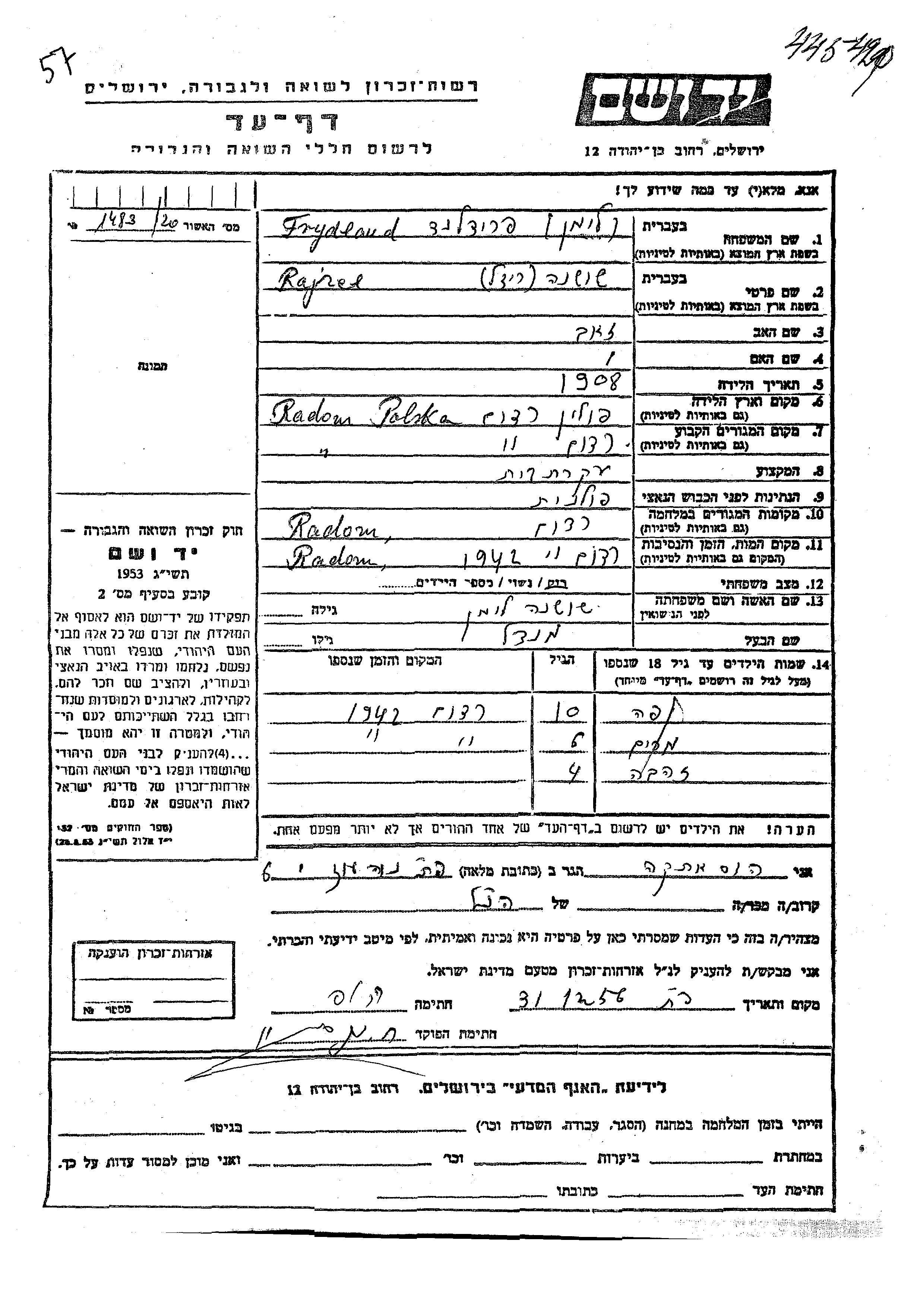 Frydland Rajzel שושנה 1908 Radom, פולין דף-עד