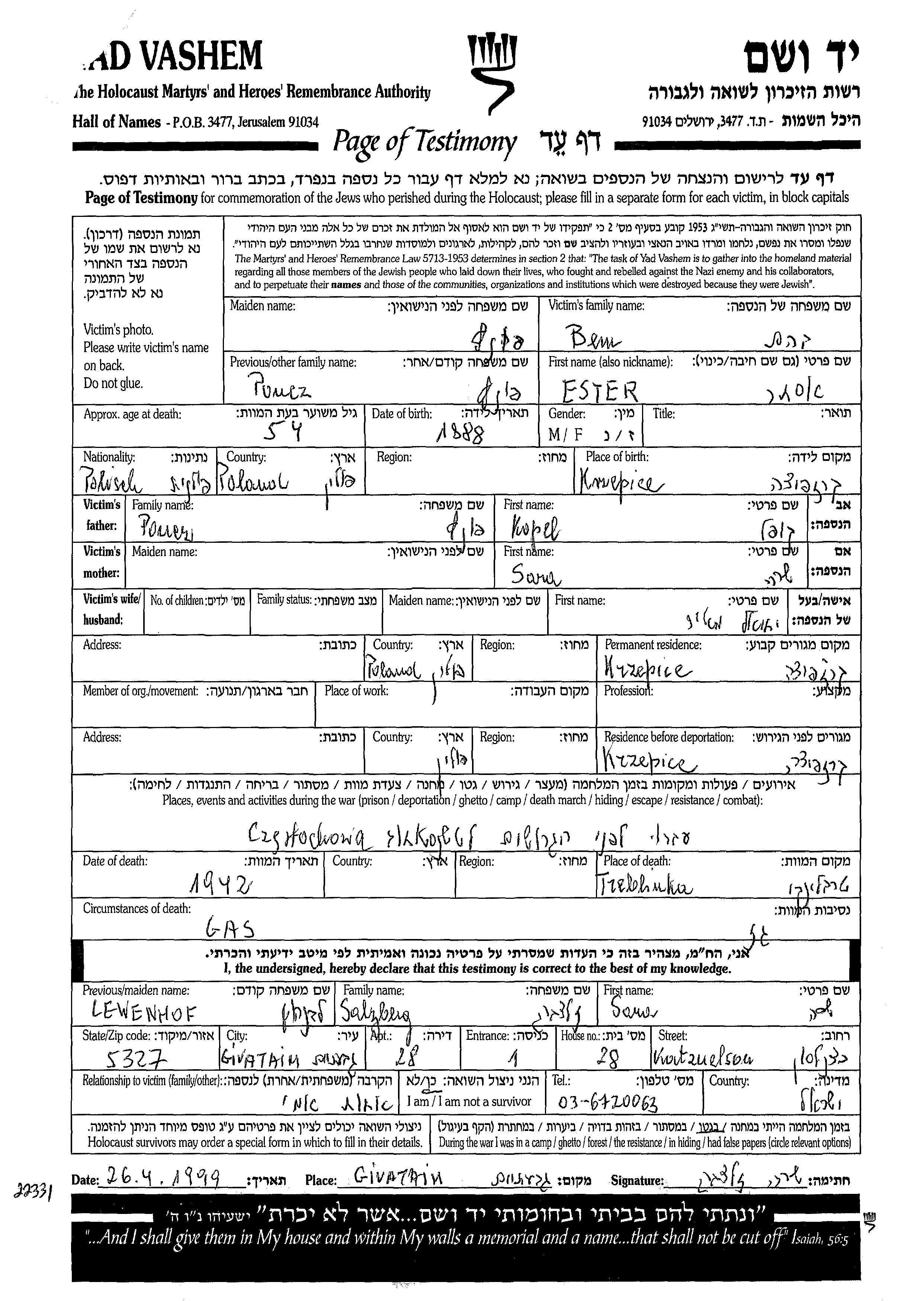 חיפוש שם מוסר דף העד. חיפוש לפי כל שם פרטי, כולל כינוי או שם חיבה