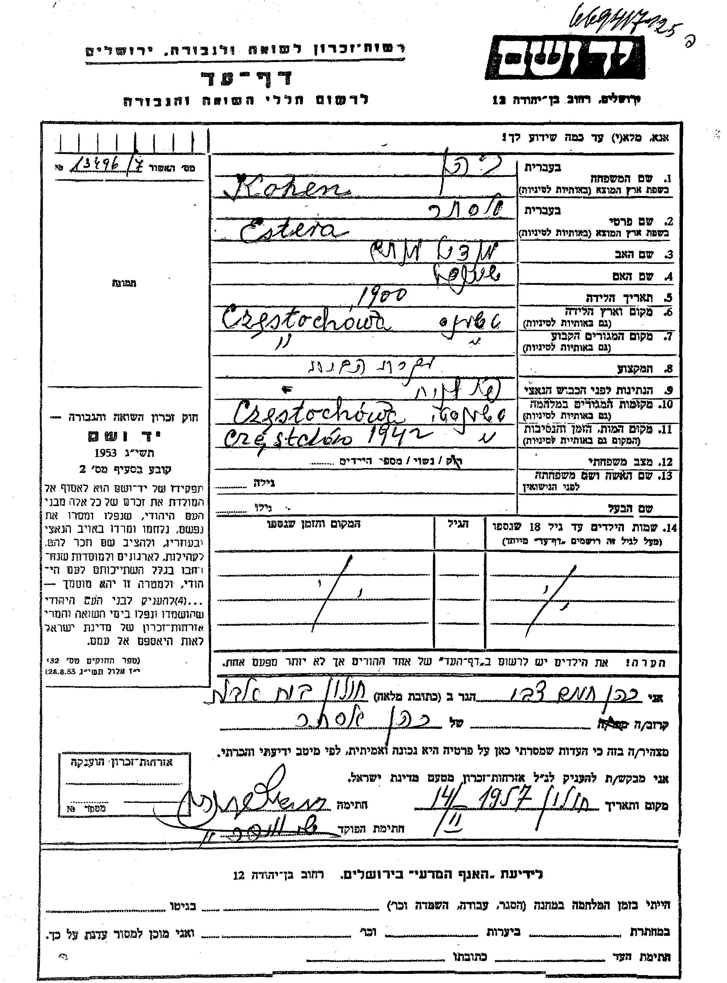 קון כהן אסתר 1898 Czestochowa, פולין דף-עד