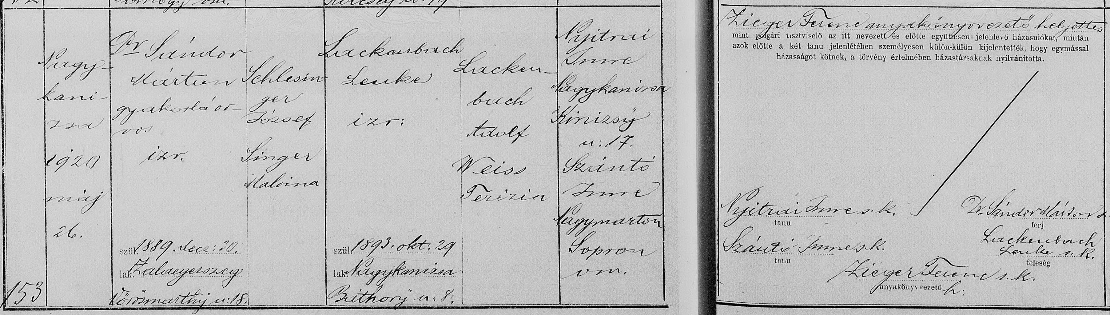 Sandor Lenke 1893 Nagykanizsa, הונגריה תעודת נישואין