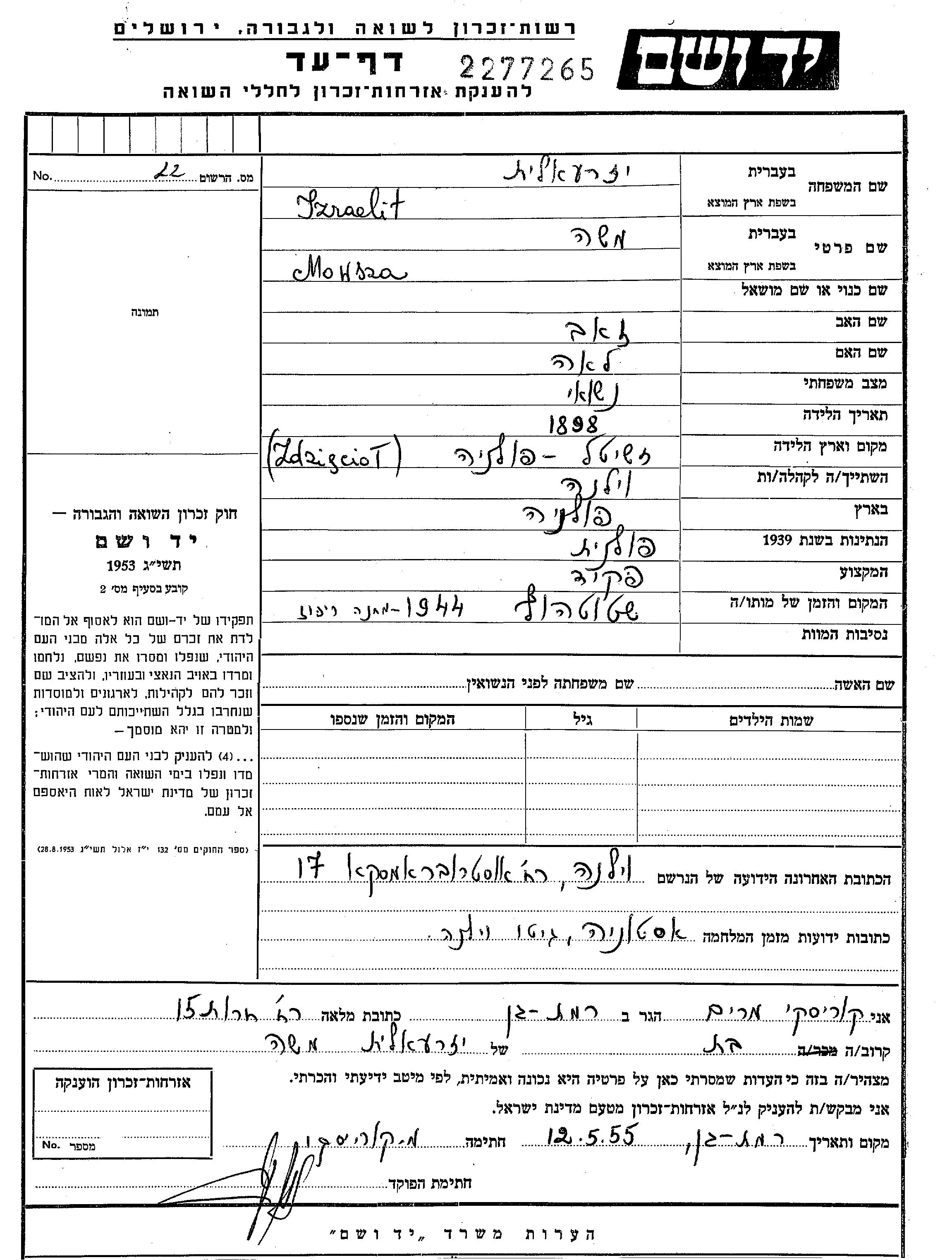 יד ושם - המפעל להנצחת השמות בדפי עד