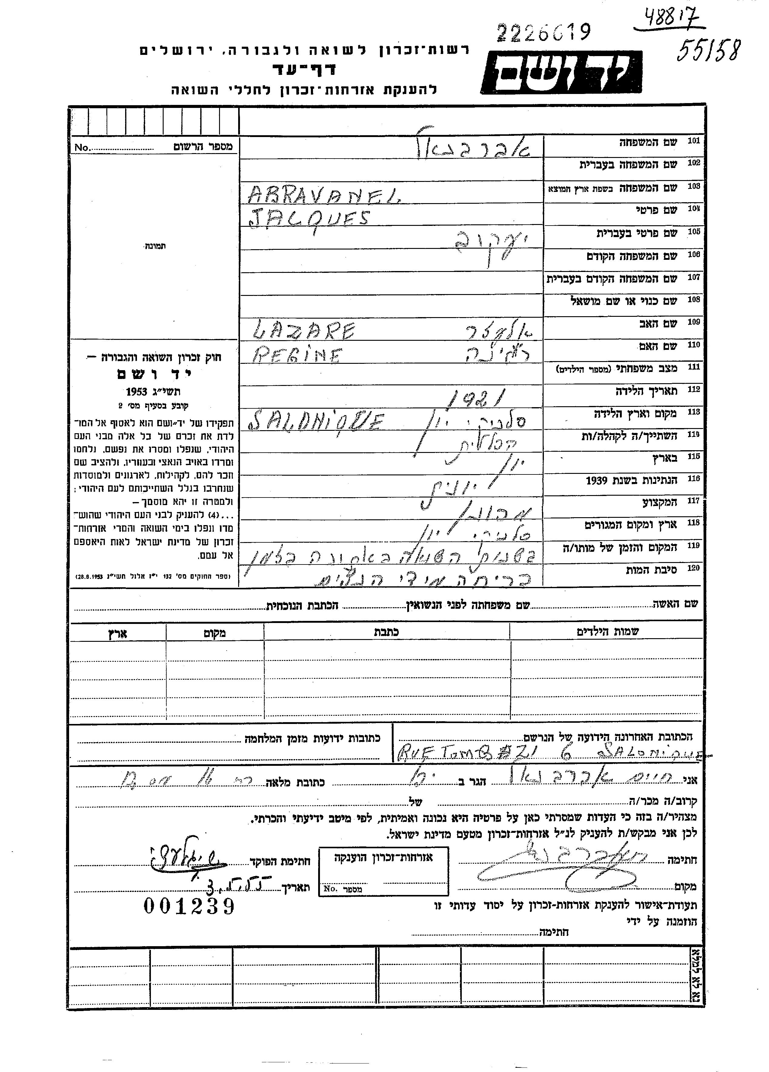 Abravanel Jacques 1921 Saloniki, יון דף-עד