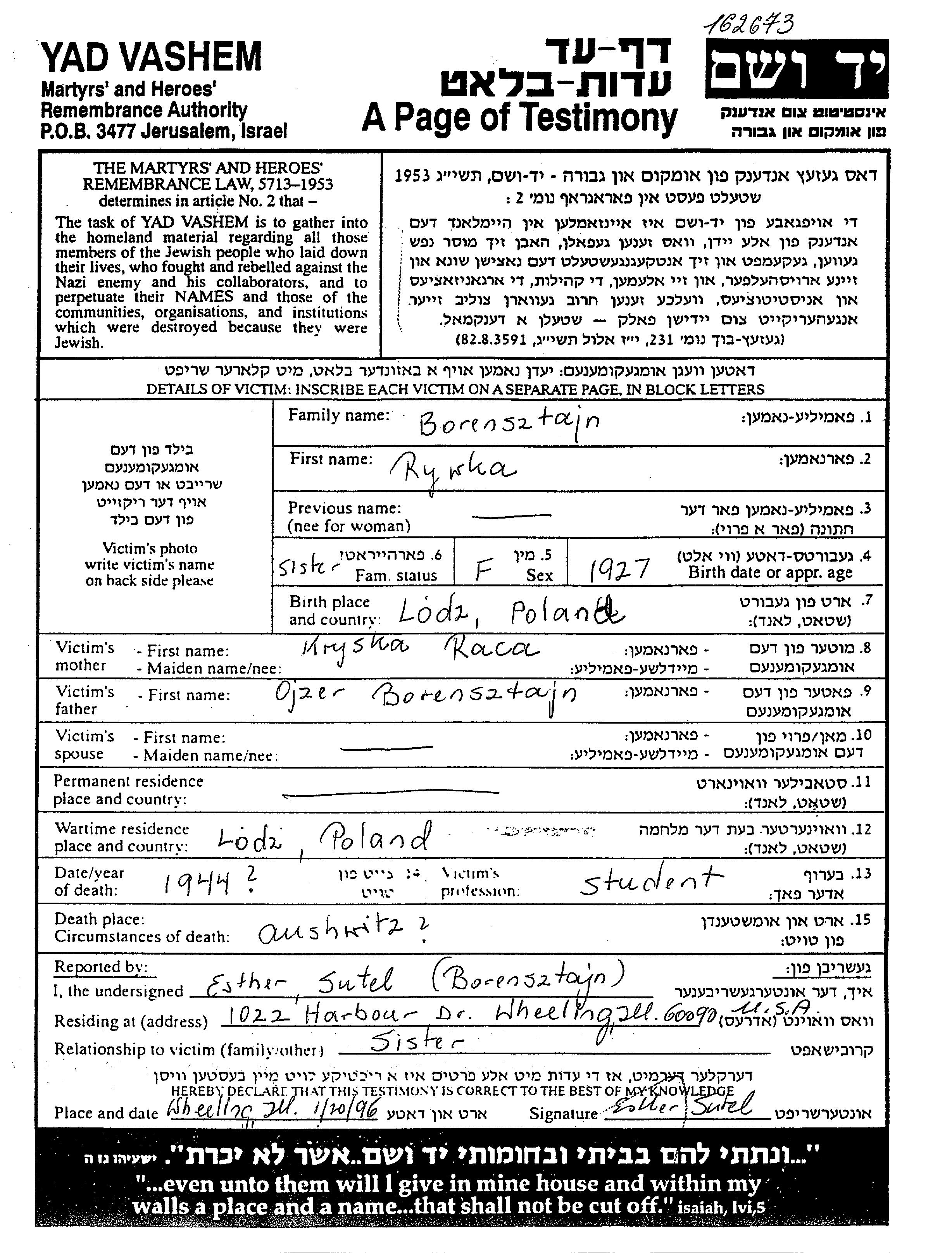 Search by name of any place during the Holocaust period: Town,Village, Camp, Ghetto, District, Region or Country