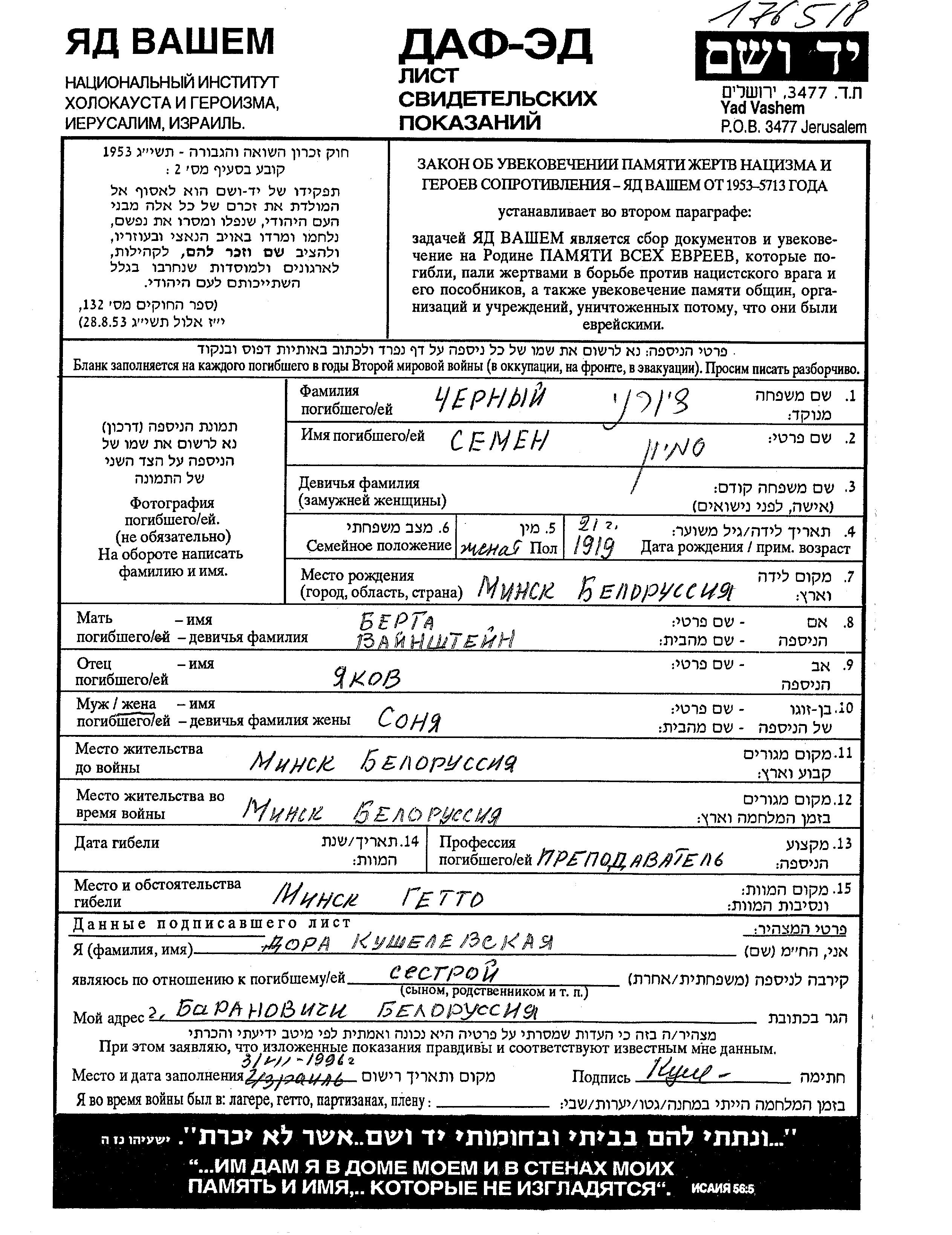 Chyorny Semyon 1919 Minsk, ביאלורוסיה (ברה"מ) דף-עד