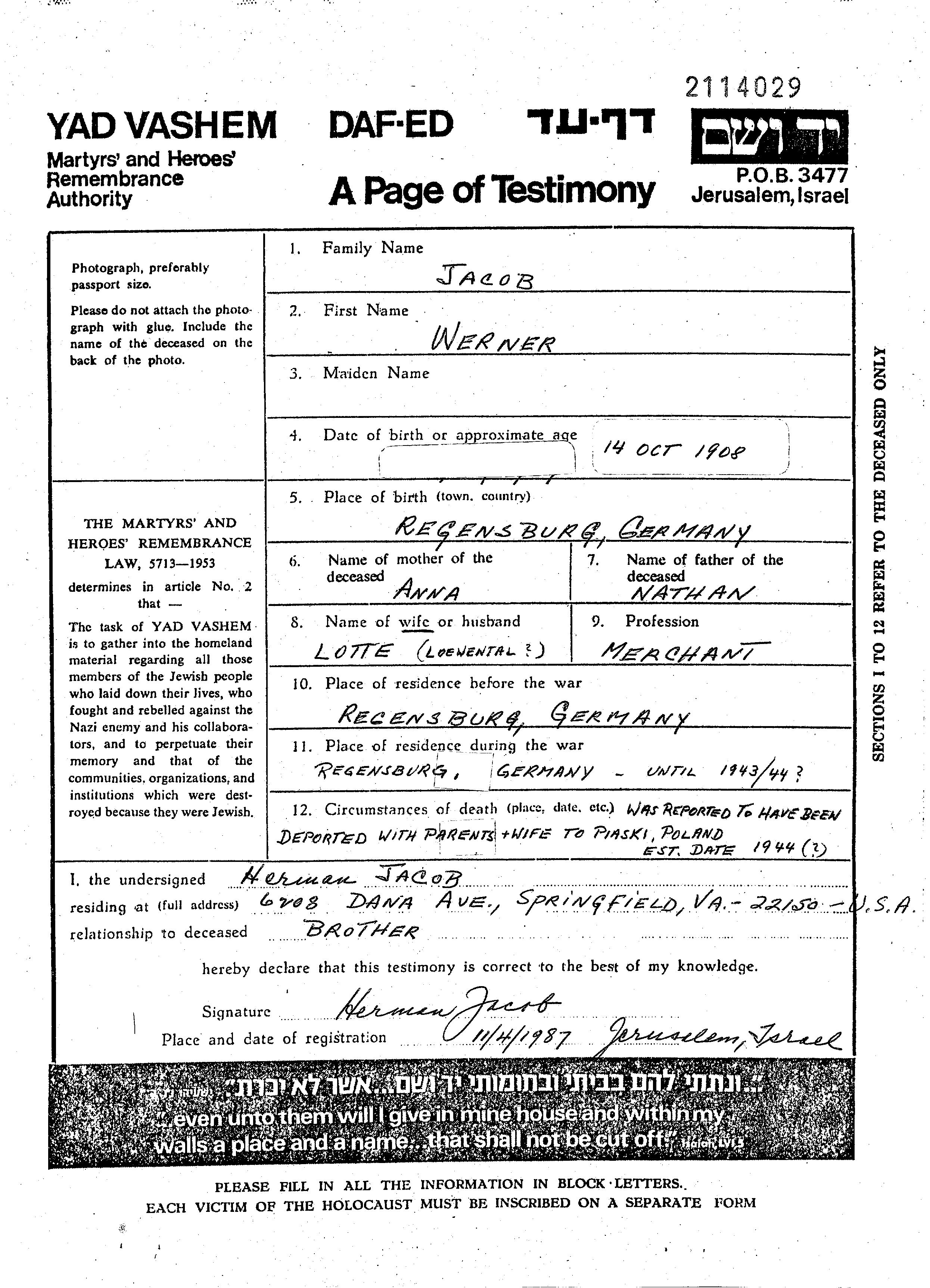 חיפוש שם מוסר דף העד. חיפוש לפי כל שם פרטי, כולל כינוי או שם חיבה