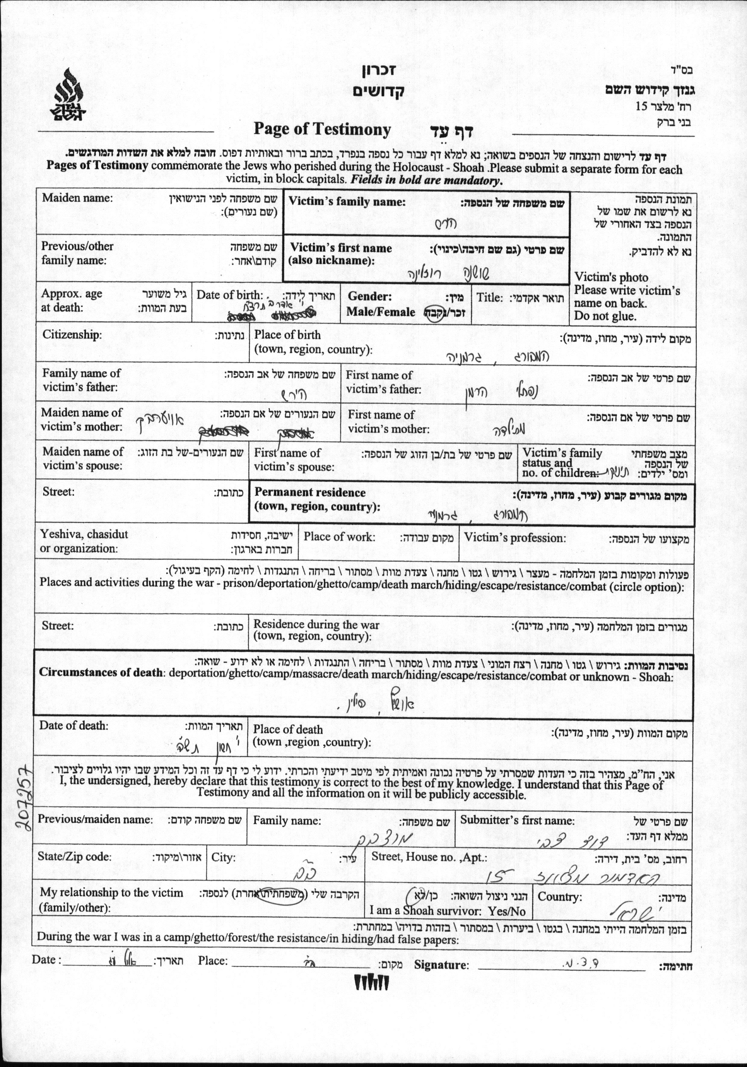 יד ושם - המפעל להנצחת השמות בדפי עד