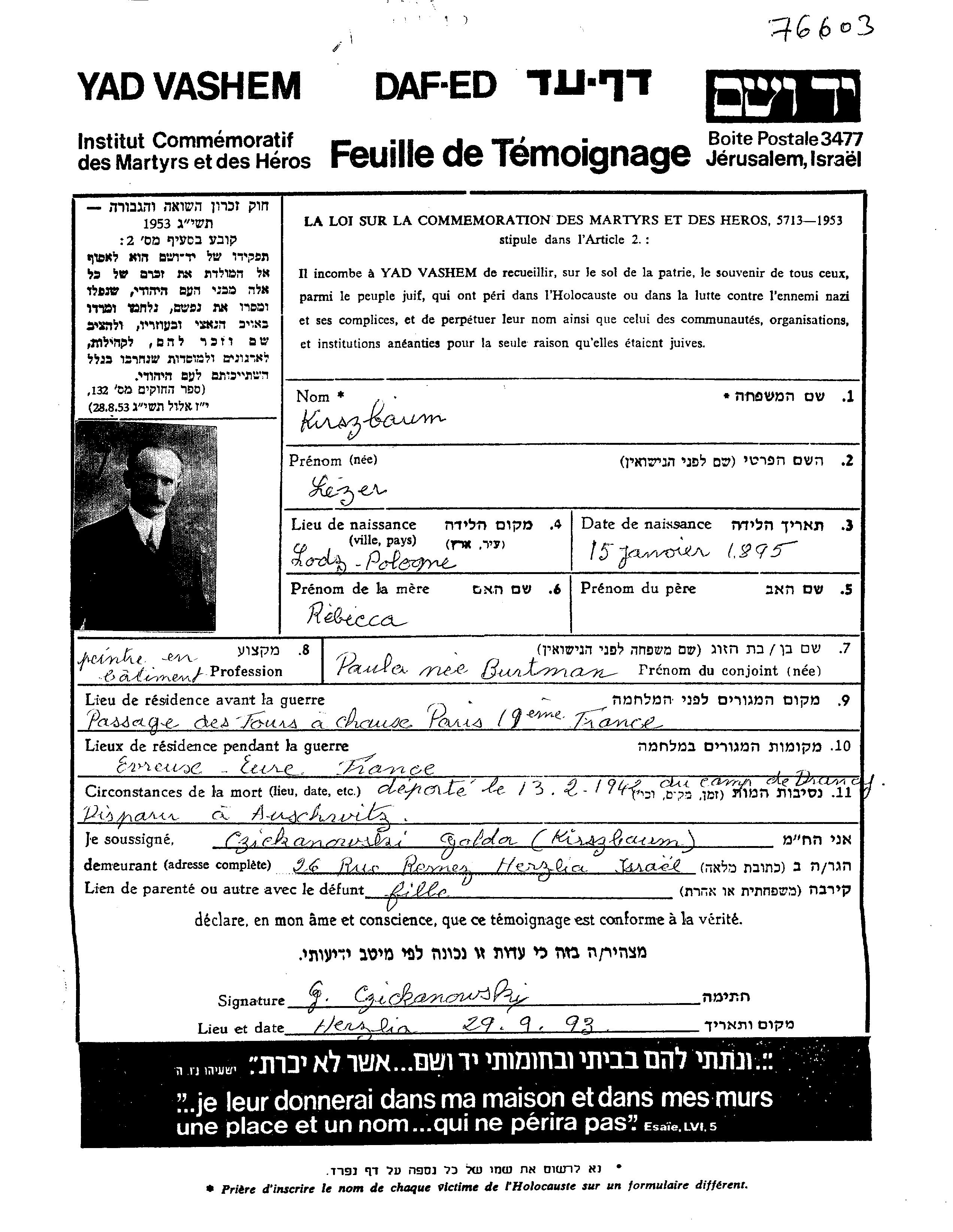 Kirszbaum Lezar 1895 Paris, צרפת דף-עד