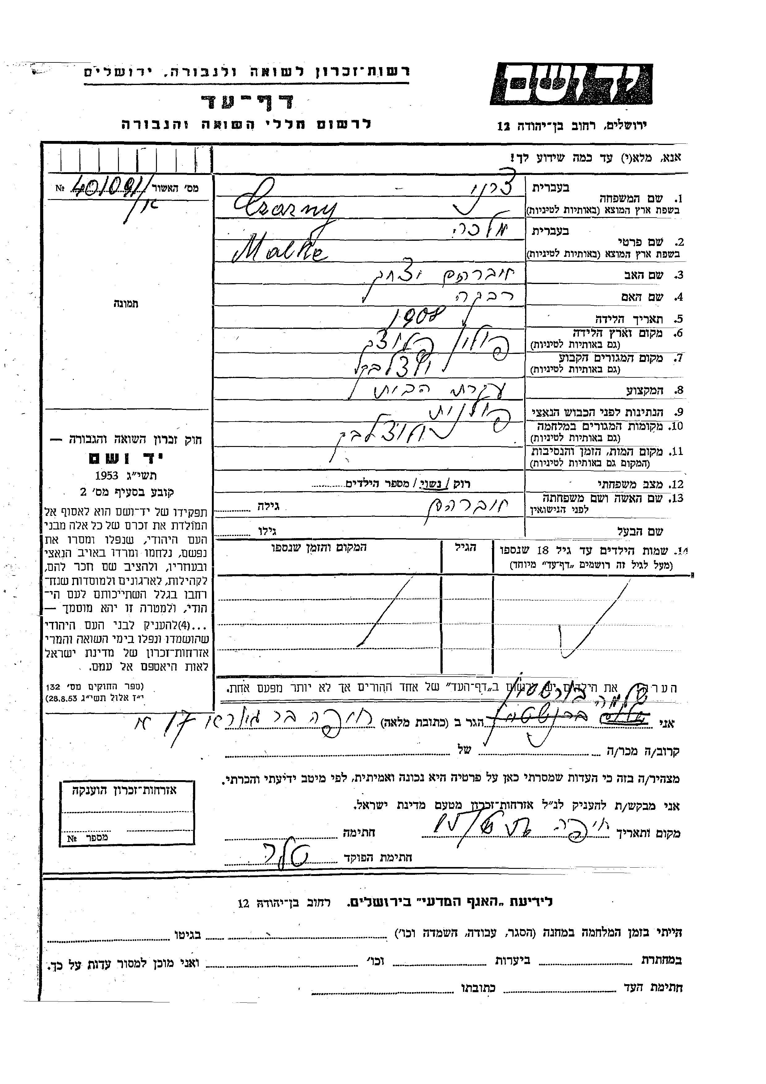 יד ושם - המפעל להנצחת השמות בדפי עד