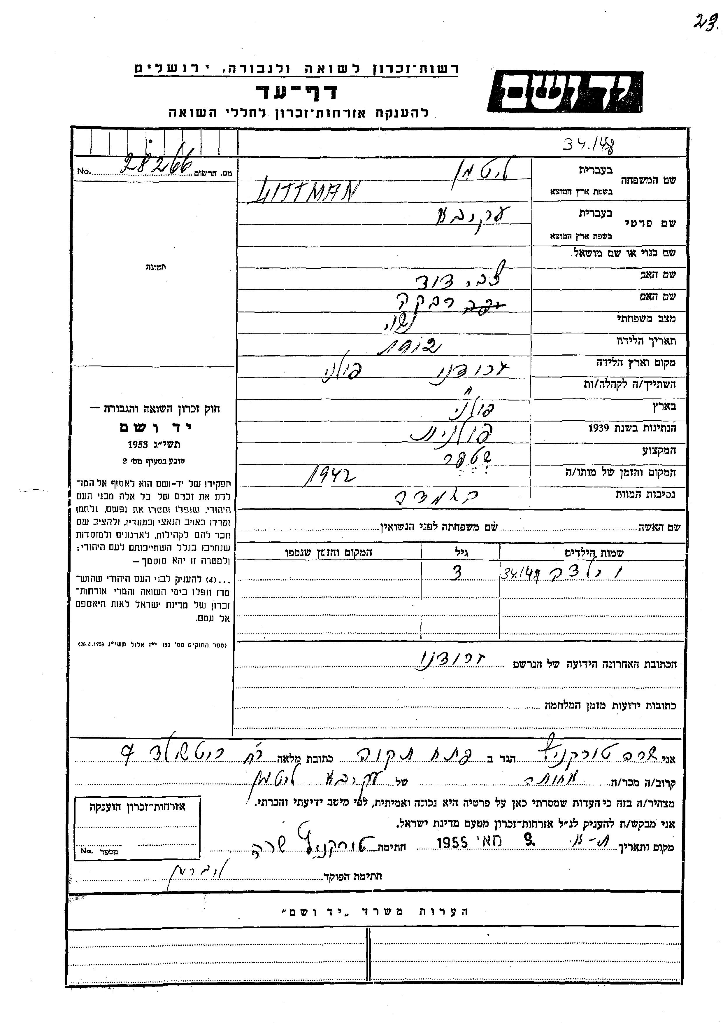 יד ושם - המפעל להנצחת השמות בדפי עד
