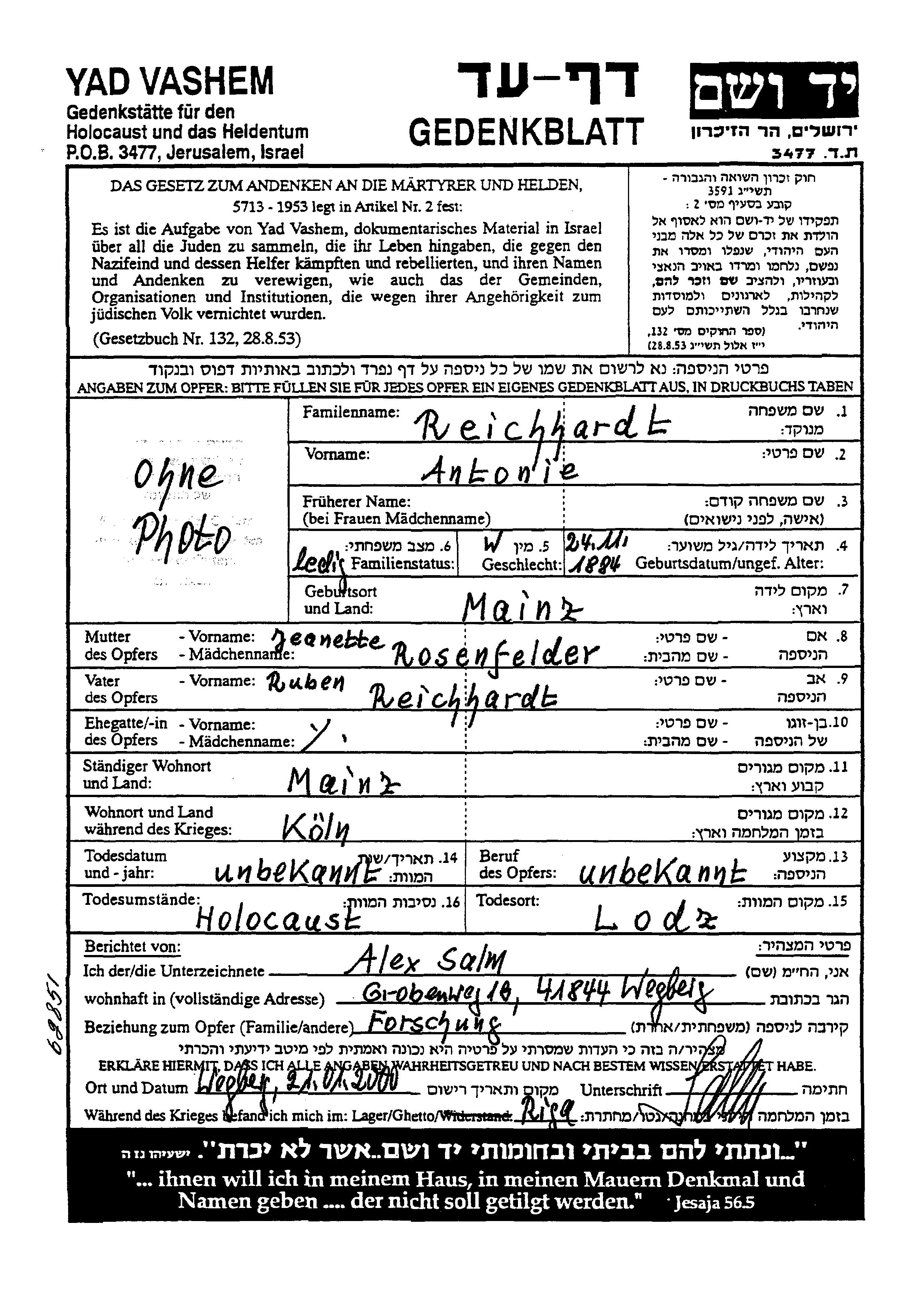Reichhardt Antonie אנטוניה 1884 Mainz, גרמניה דף-עד