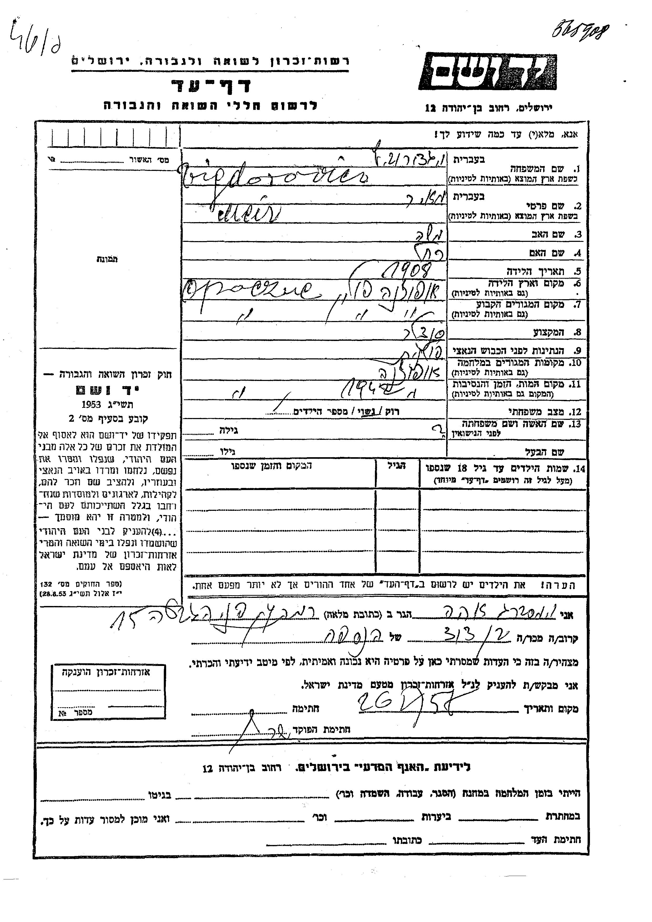 יד ושם - המפעל להנצחת השמות בדפי עד