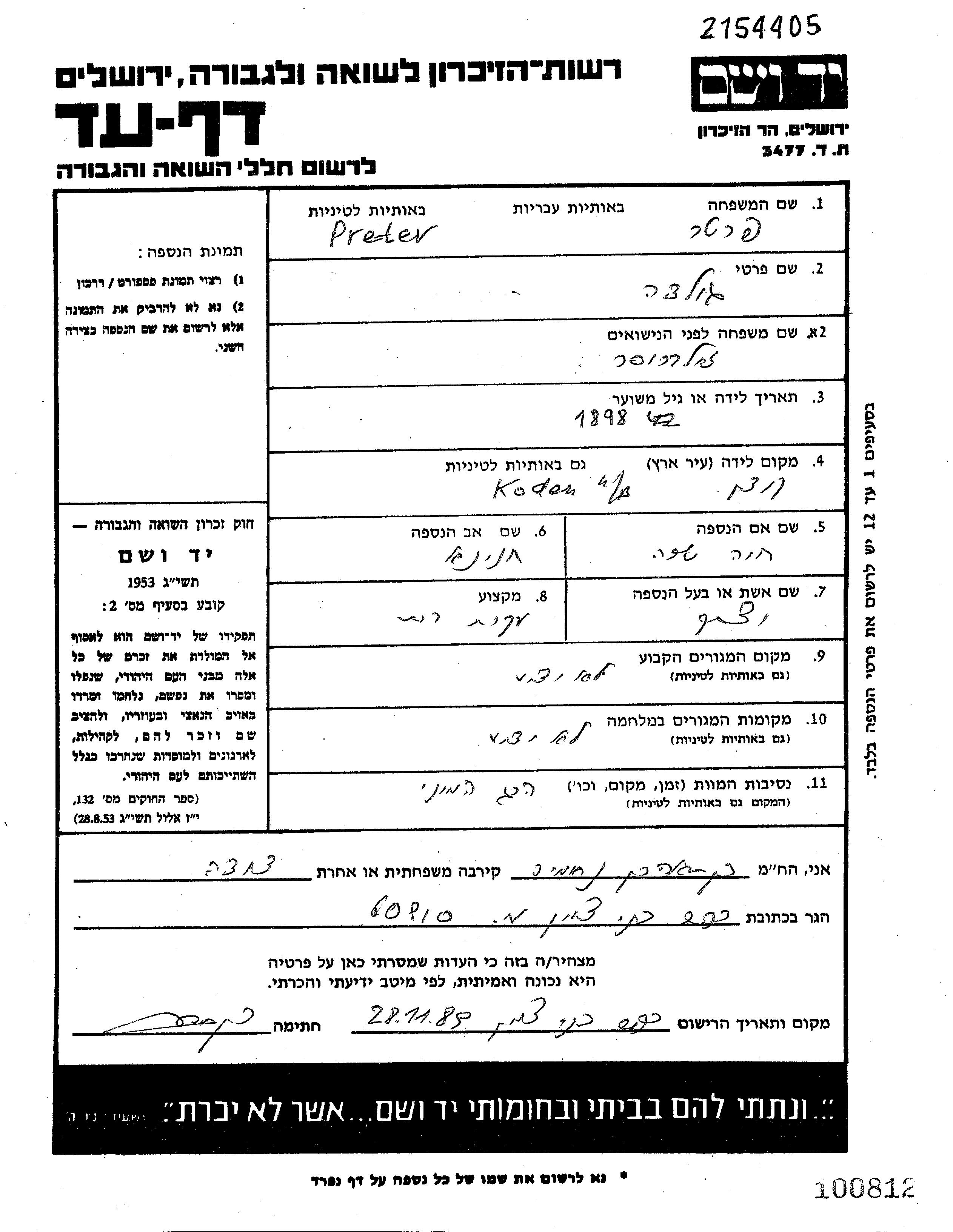 חיפוש שם מוסר דף העד. חיפוש לפי כל שם פרטי, כולל כינוי או שם חיבה