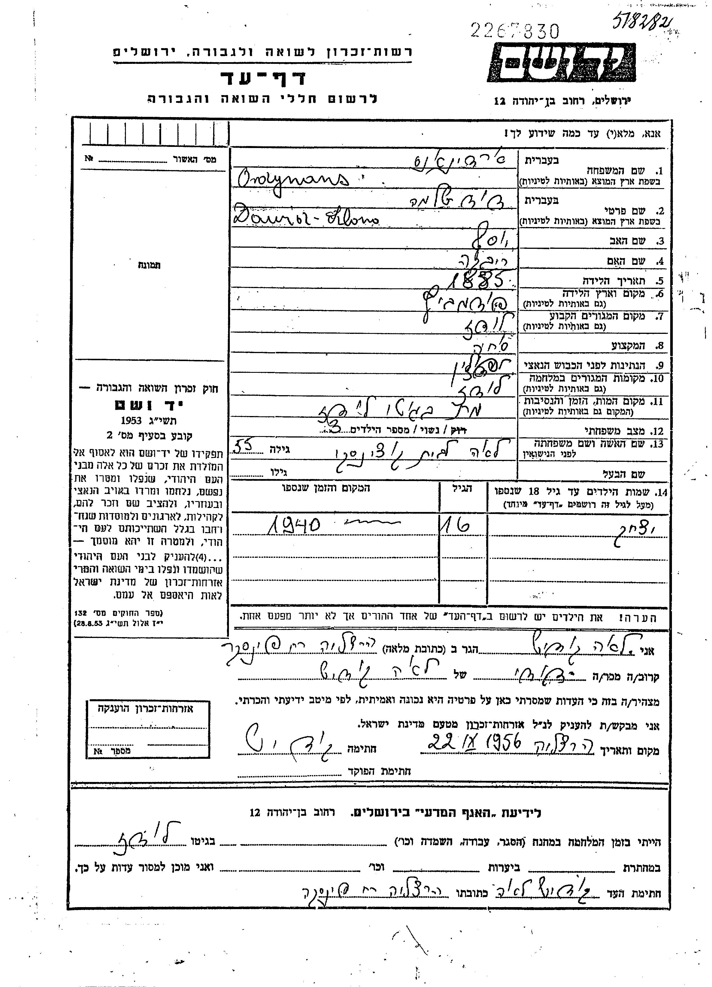 | Ordynans | Shloma דוד | 1880 | Lodz, פולין | דף-עד |