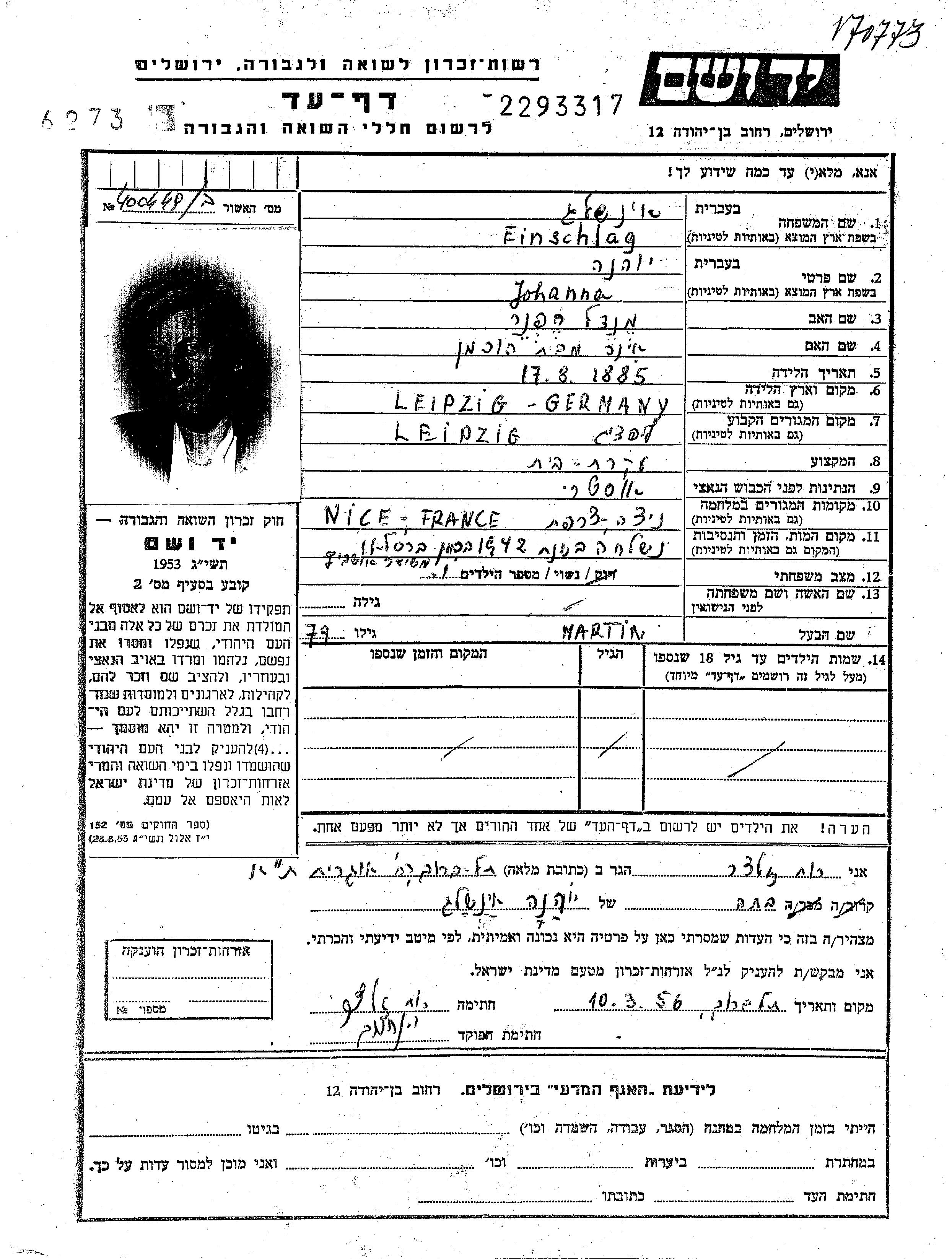 Einschlag | Johanna | 1885 | Leipzig, גרמניה | דף-עד |