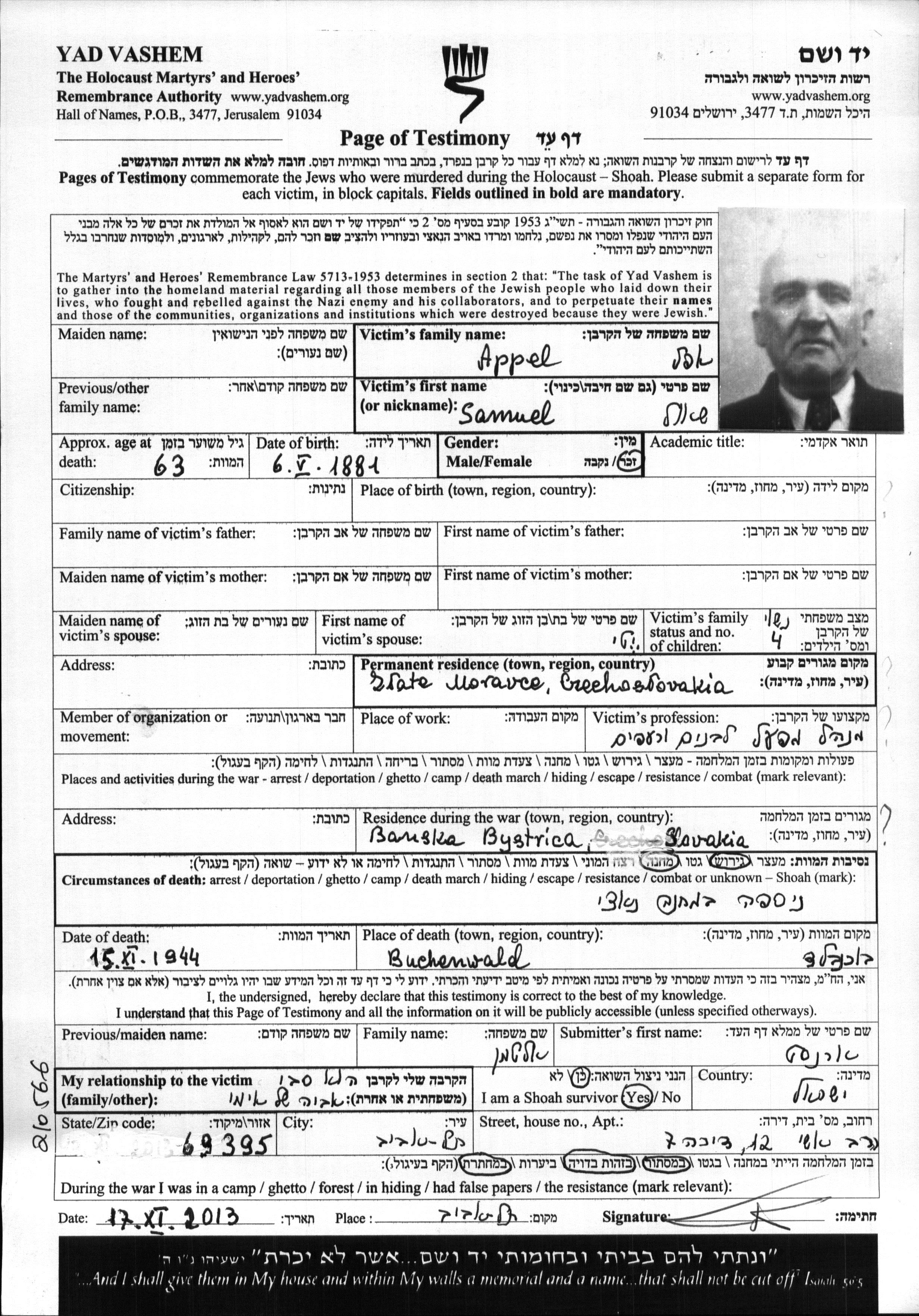 חיפוש שם מוסר דף העד. חיפוש לפי כל שם פרטי, כולל כינוי או שם חיבה