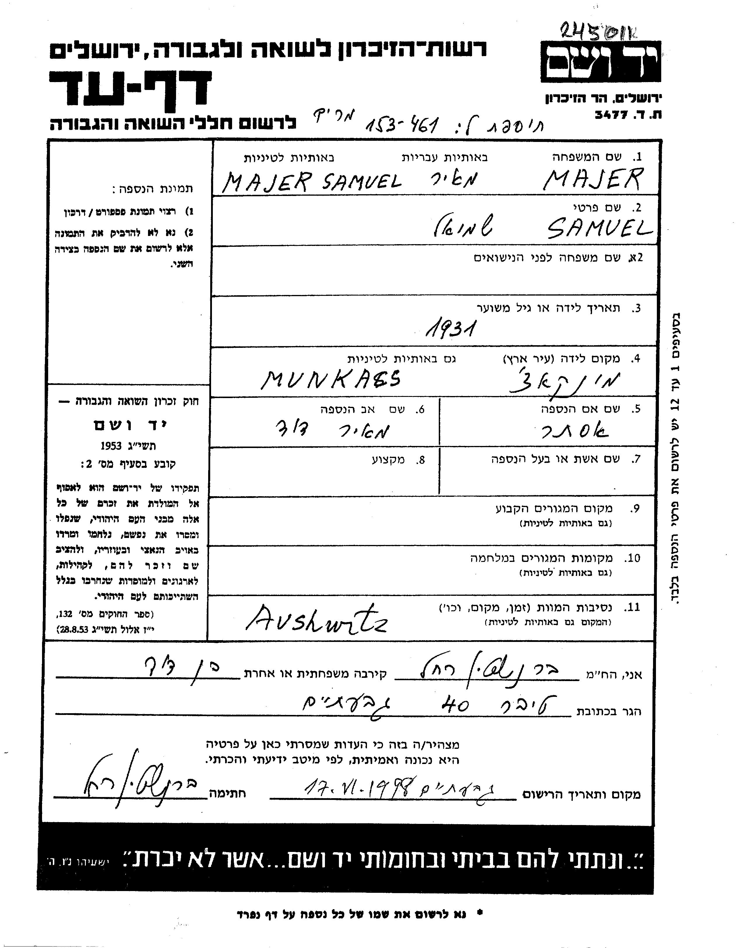 עיר/כפר, גטו/מחנה או אתר רצח או מחוז/אזור או מדינה. שם מקום ניתן לחפש רק בא-ב לטיני.