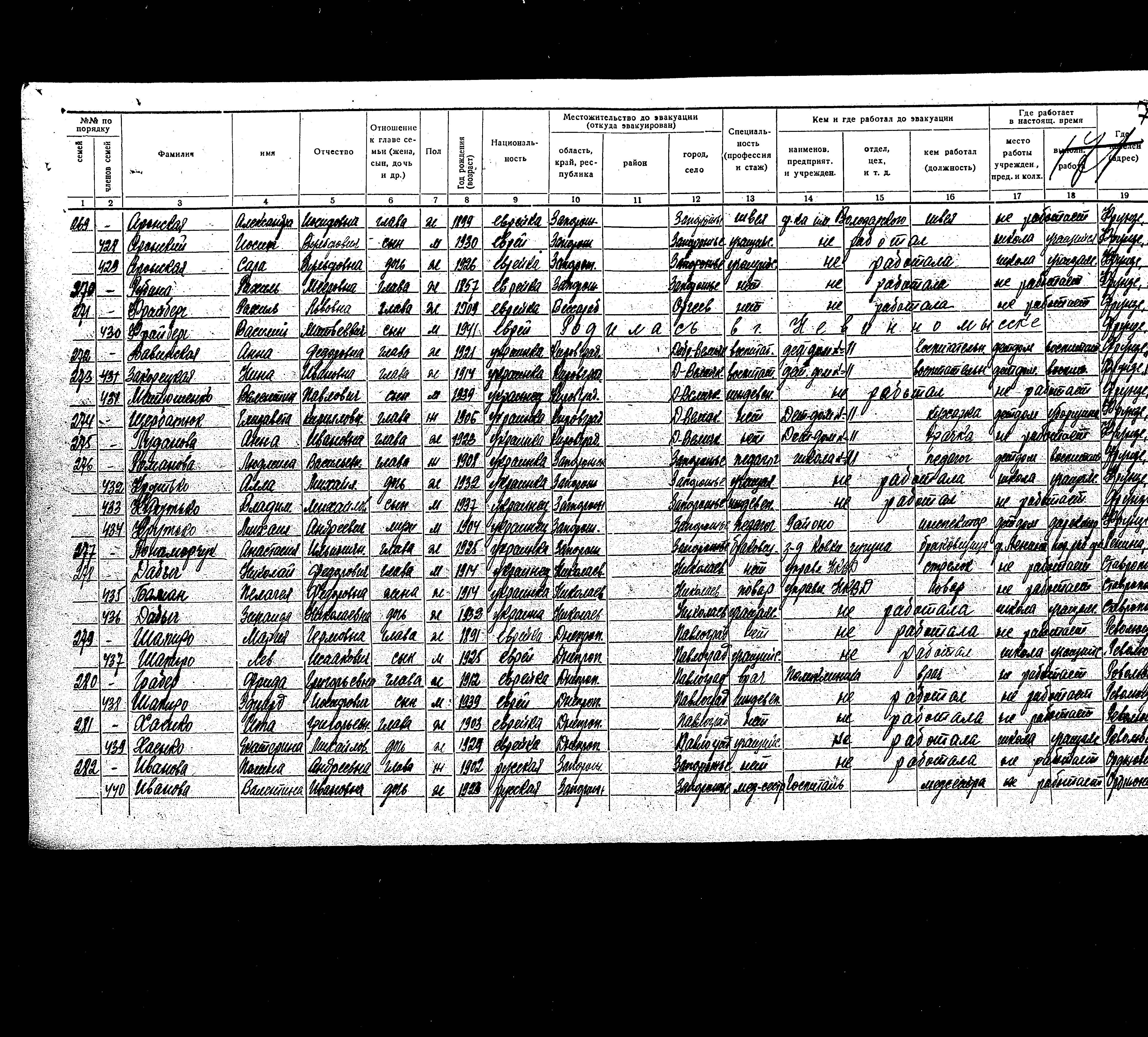 רשימת תושבים שפונו ל- Nevinnomyssk, שהוכנה בשנת 1942