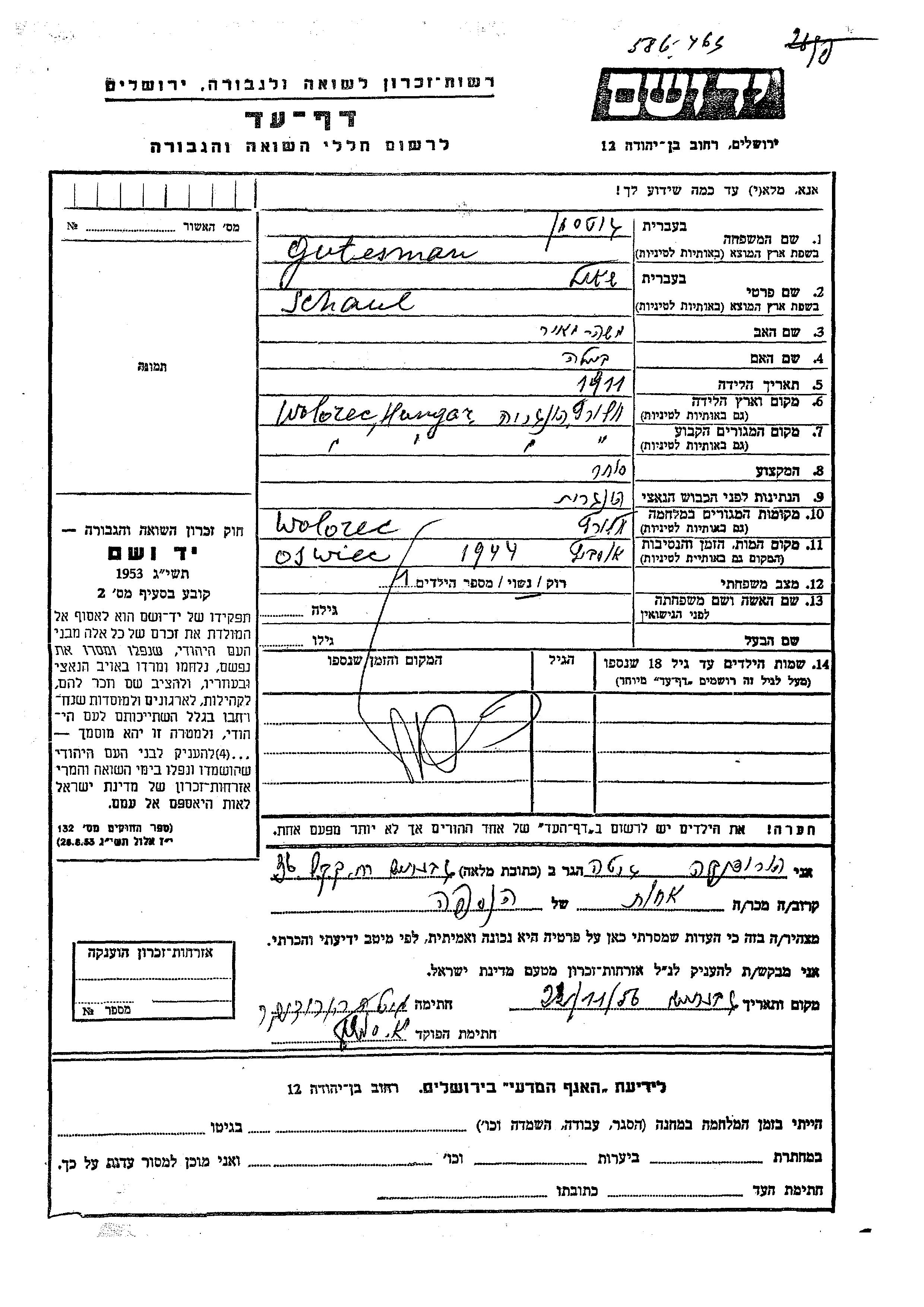 Gutesman Schaul 1911 Volovec, צ'כוסלובקיה דף-עד