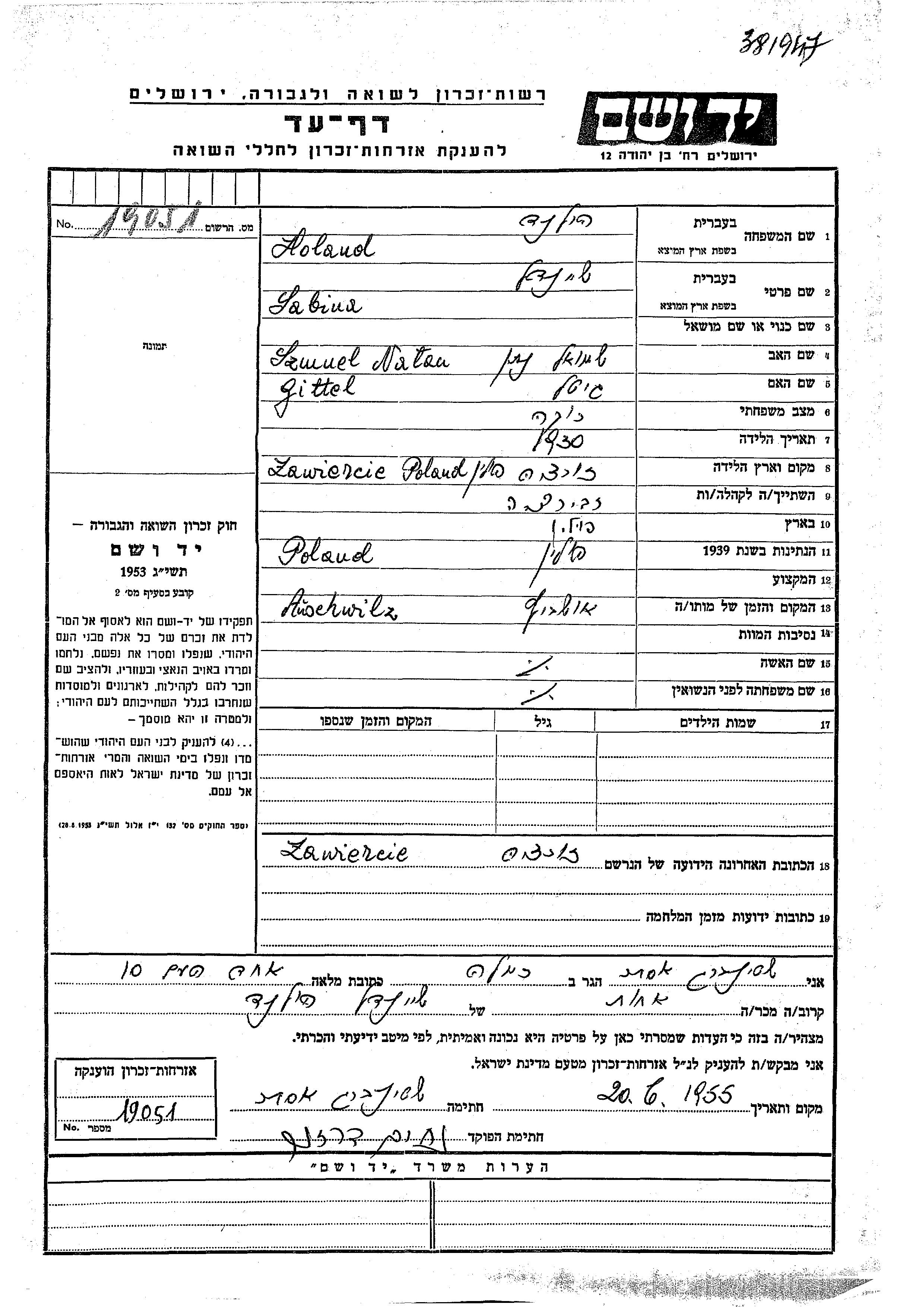 יד ושם - המפעל להנצחת השמות בדפי עד