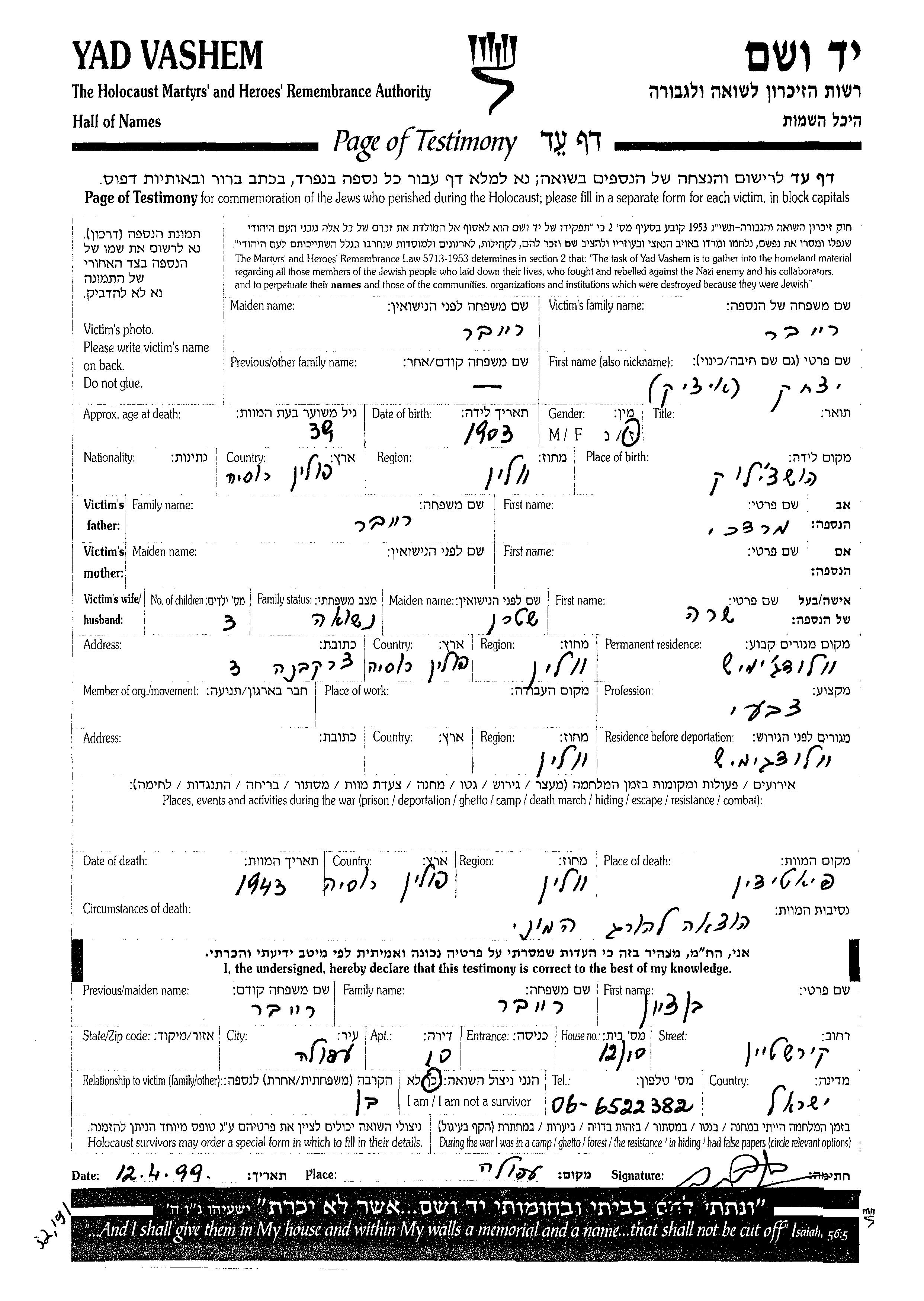 חיפוש שם מוסר דף העד. חיפוש לפי כל שם פרטי, כולל כינוי או שם חיבה