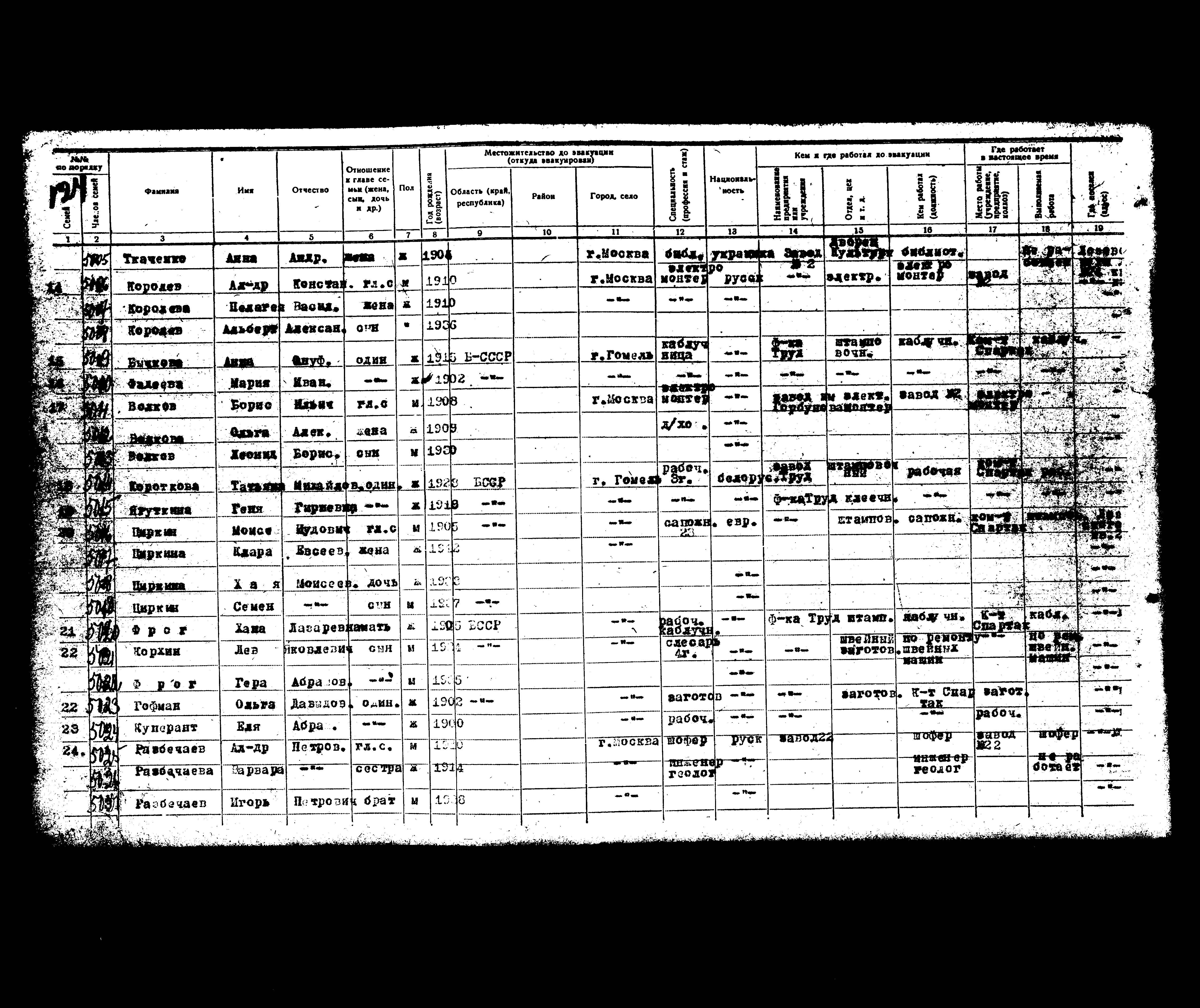 קורחין לב 1924 Gomel, ביאלורוסיה (ברה"מ) רשימת מפונים