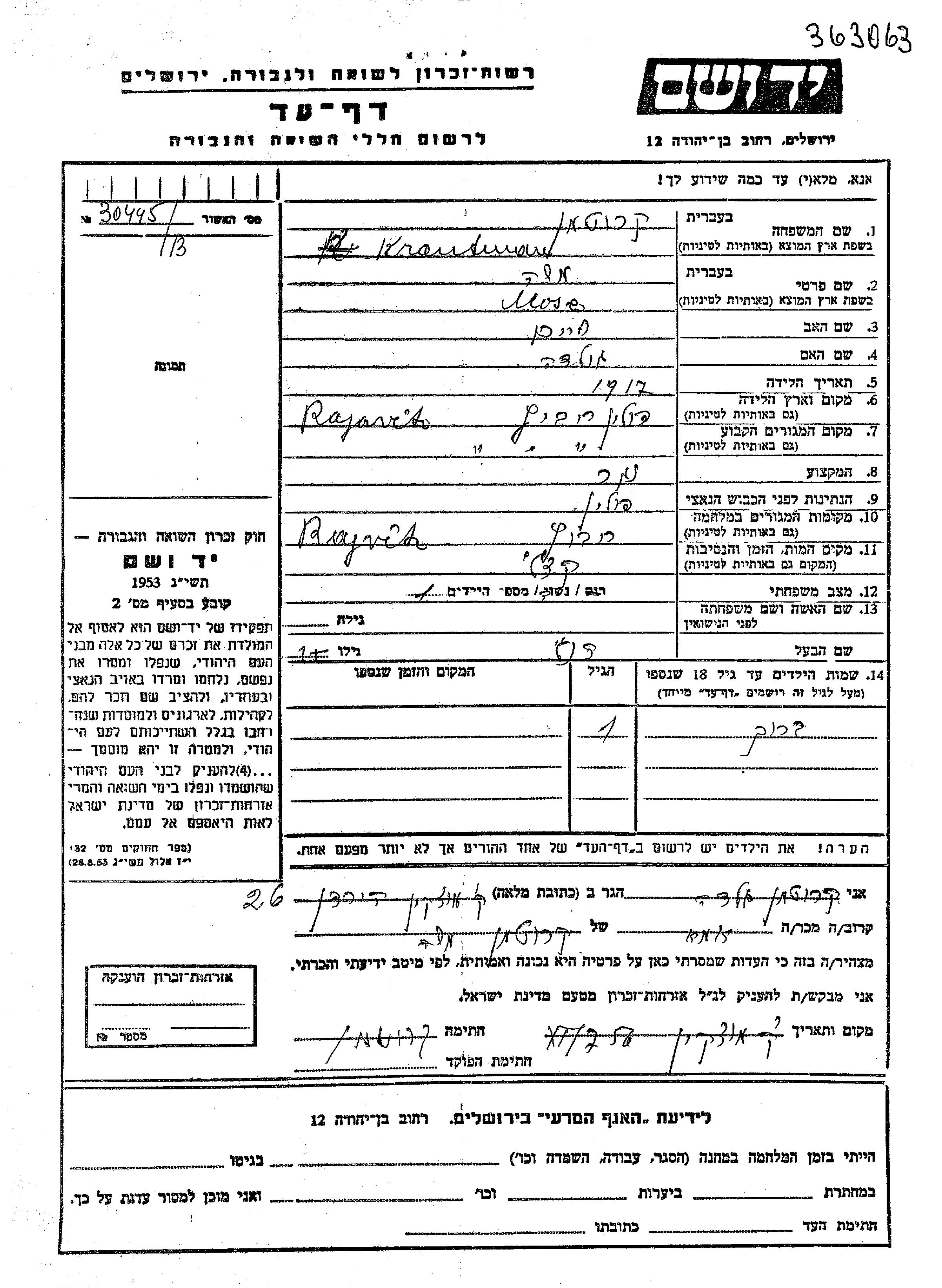 קרוטמן משה 1917 Rejowiec, פולין דף-עד