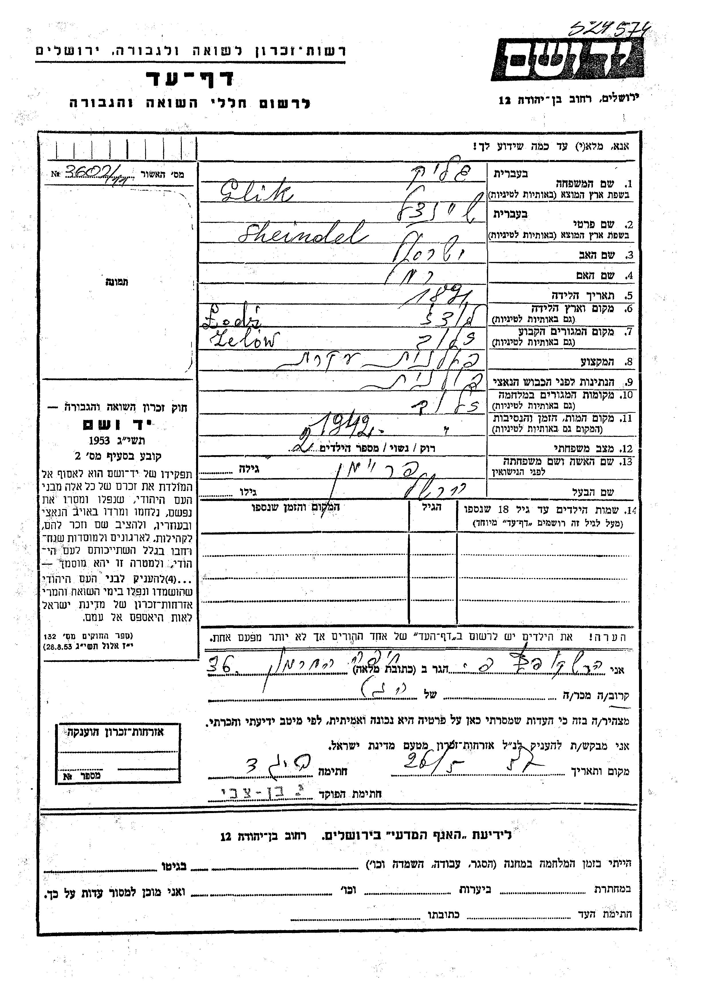 יד ושם - המפעל להנצחת השמות בדפי עד