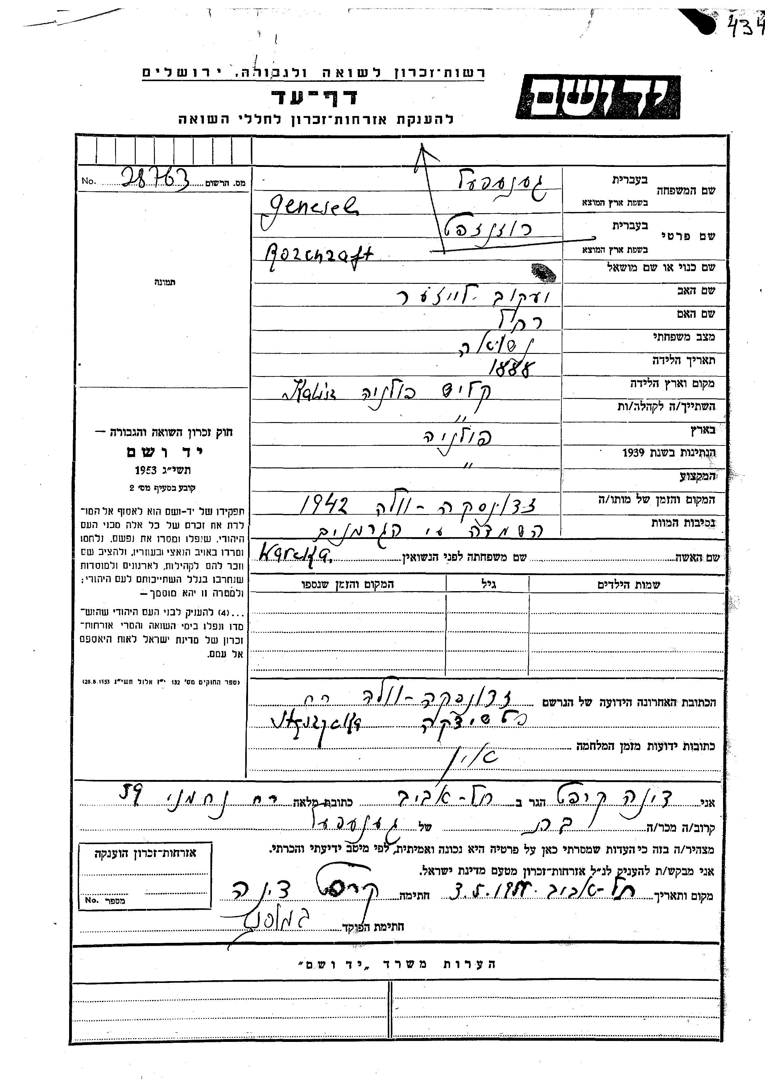 יד ושם - המפעל להנצחת השמות בדפי עד