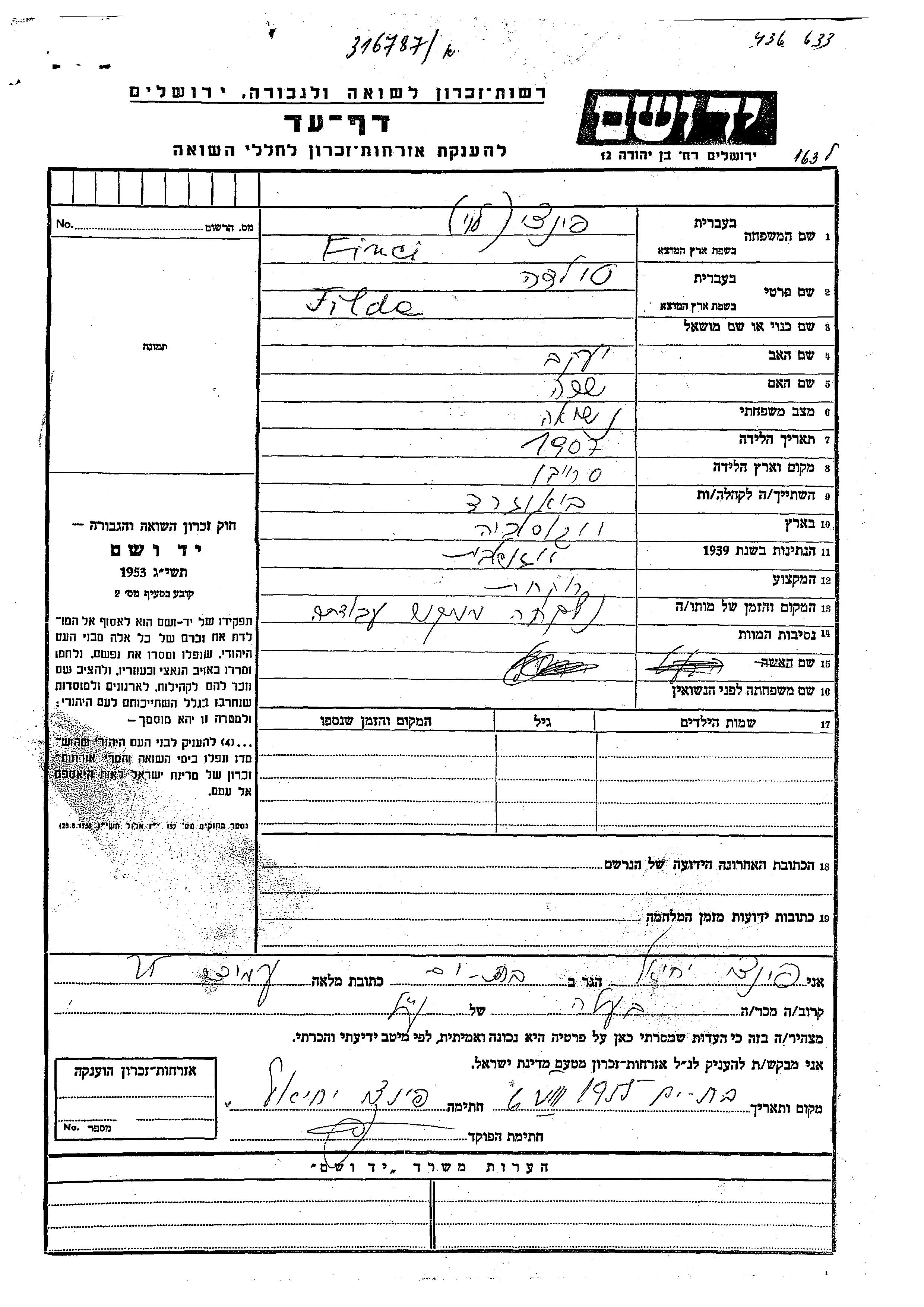 יד ושם - המפעל להנצחת השמות בדפי עד