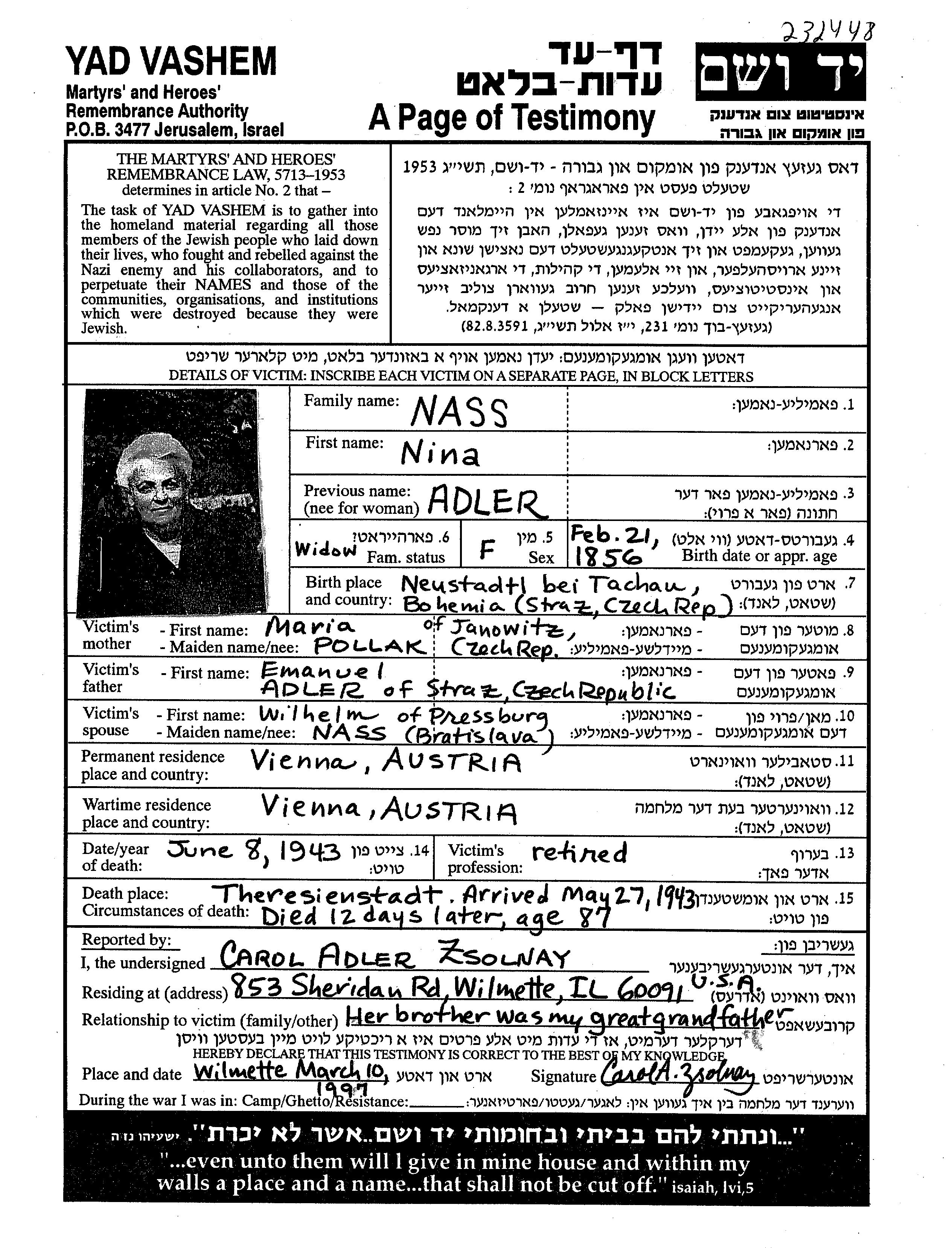 חיפוש שם מוסר דף העד. חיפוש לפי כל שם פרטי, כולל כינוי או שם חיבה