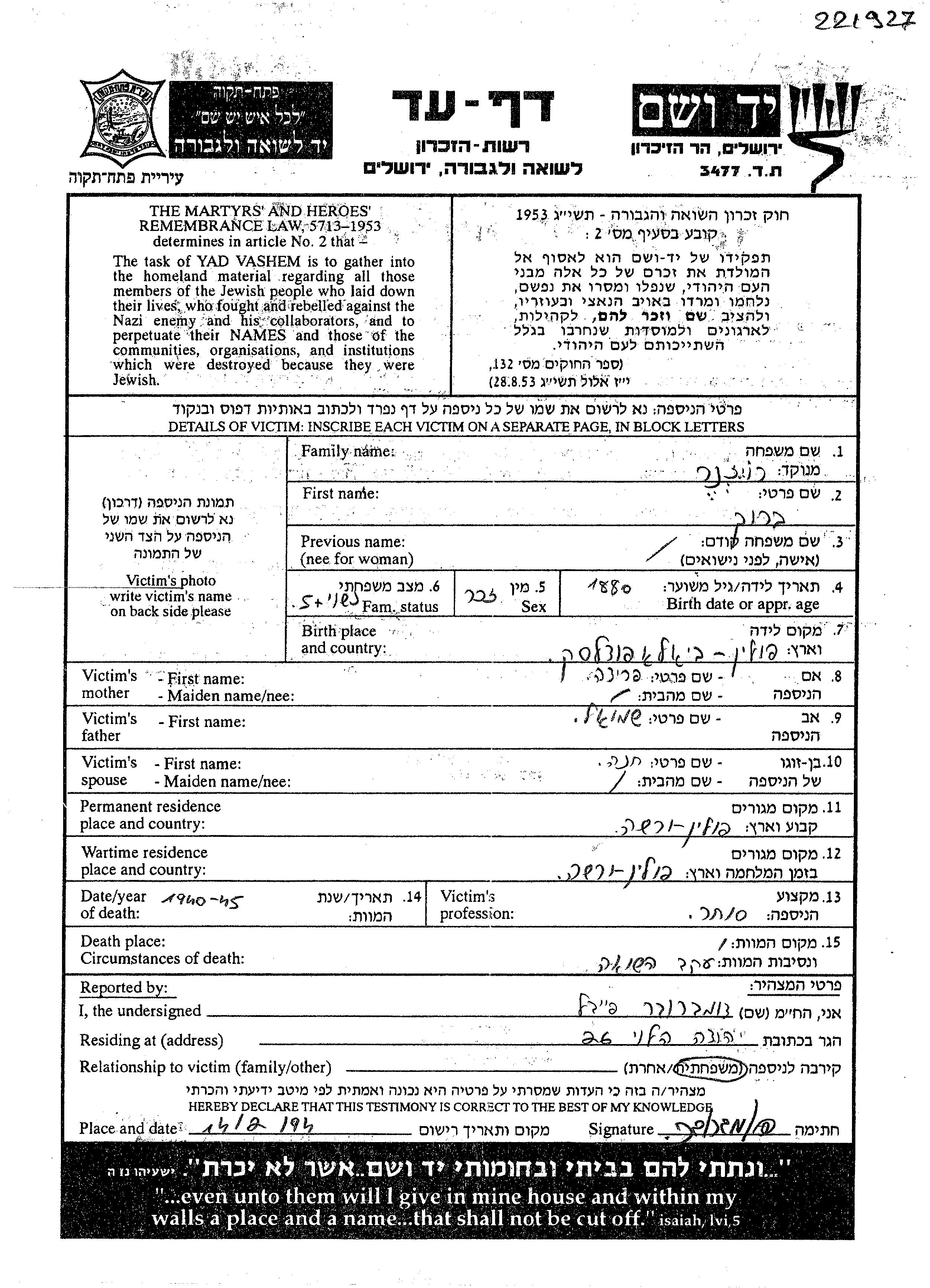 יד ושם - המפעל להנצחת השמות בדפי עד