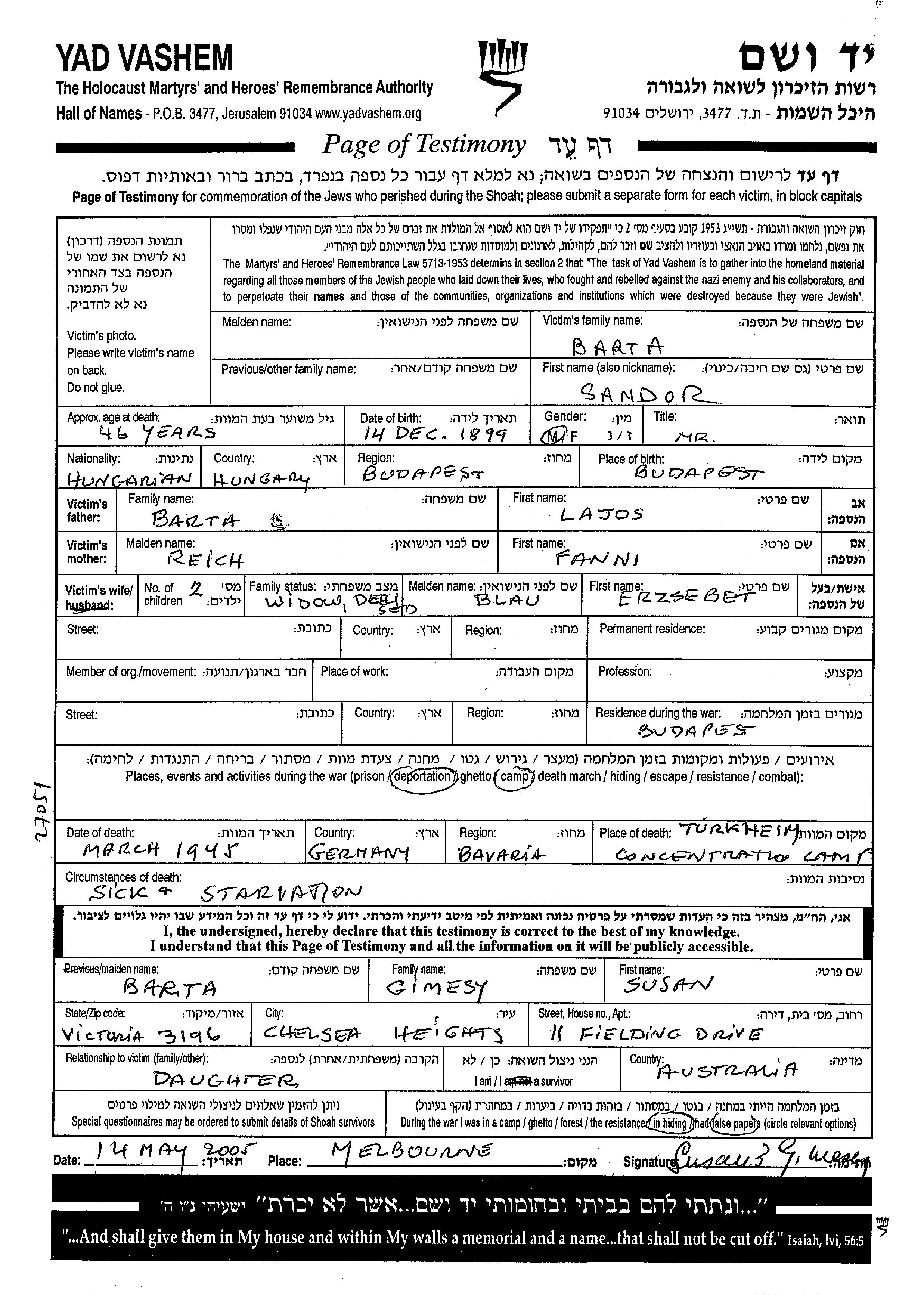 יד ושם - המפעל להנצחת השמות בדפי עד