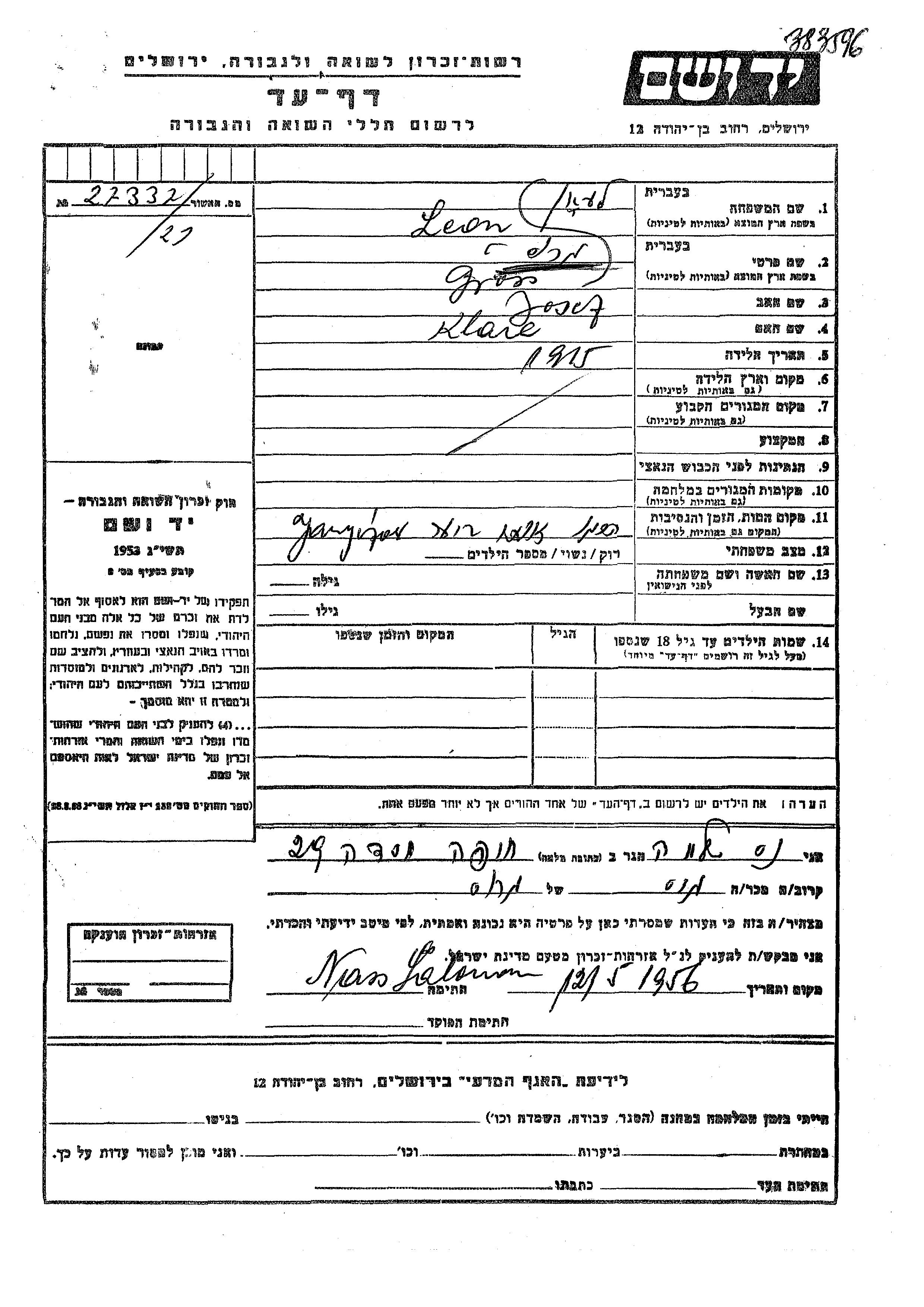 יד ושם - המפעל להנצחת השמות בדפי עד