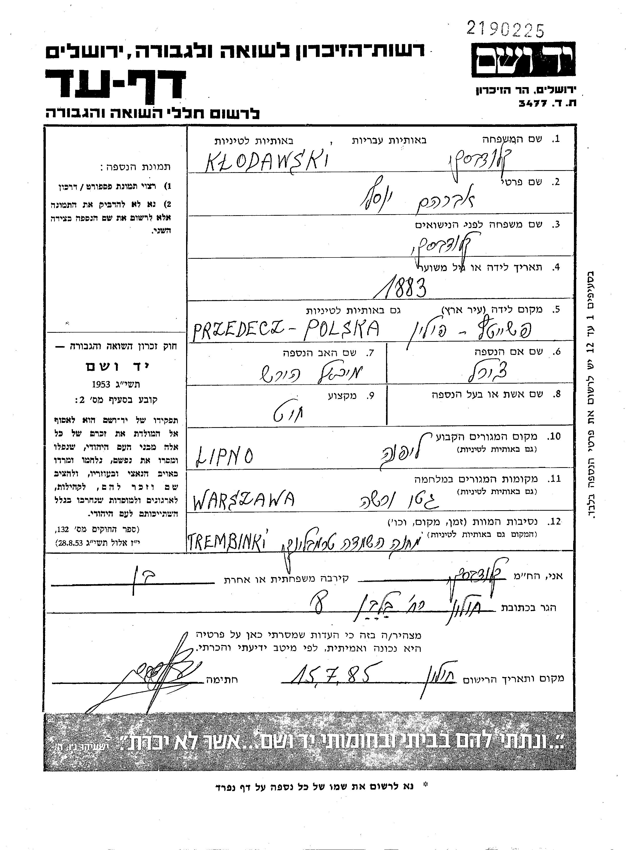 Klodawski | יוסף אברהם | 1883 | Lipno, פולין | דף-עד |