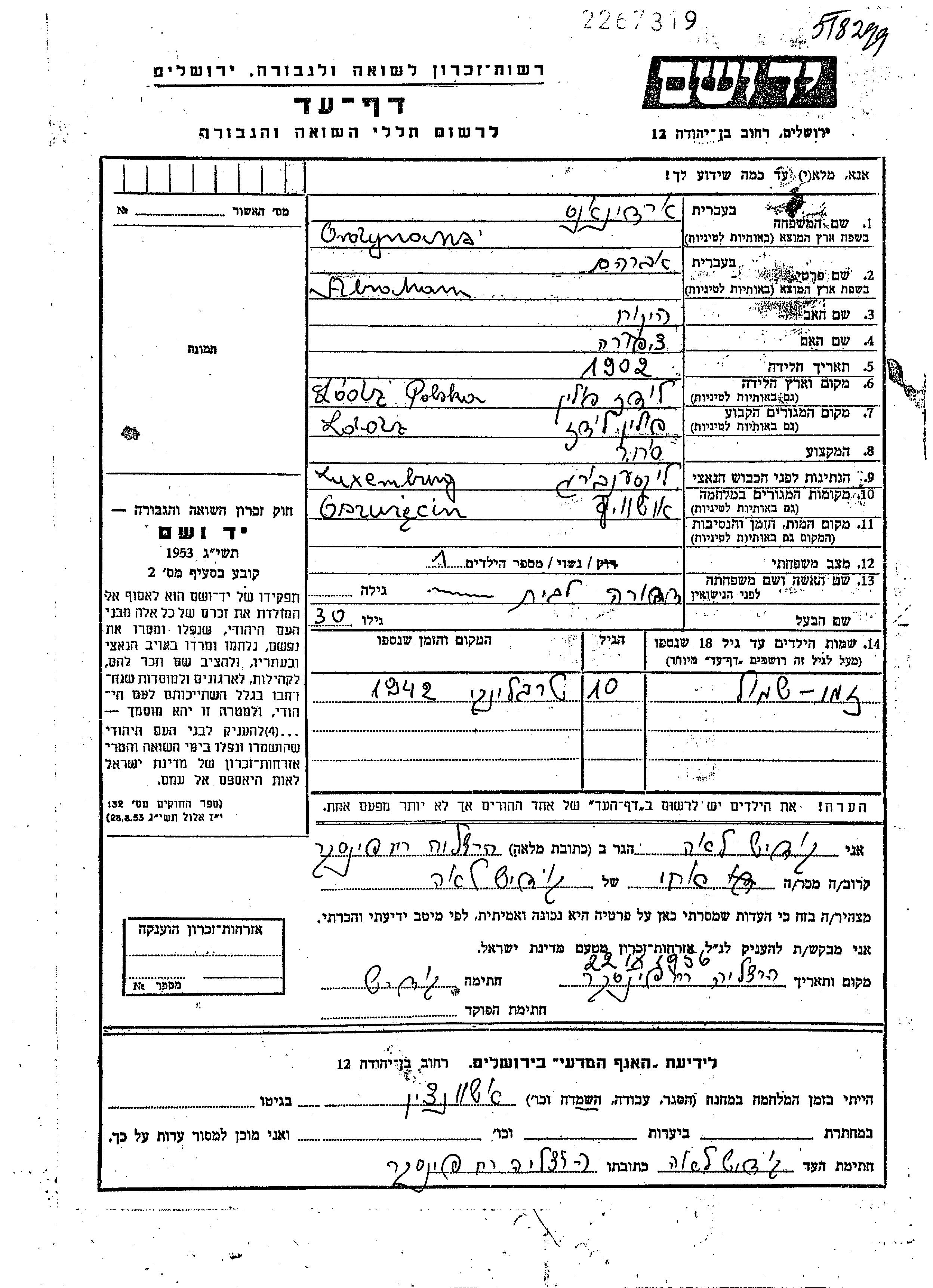 יד ושם - המפעל להנצחת השמות בדפי עד