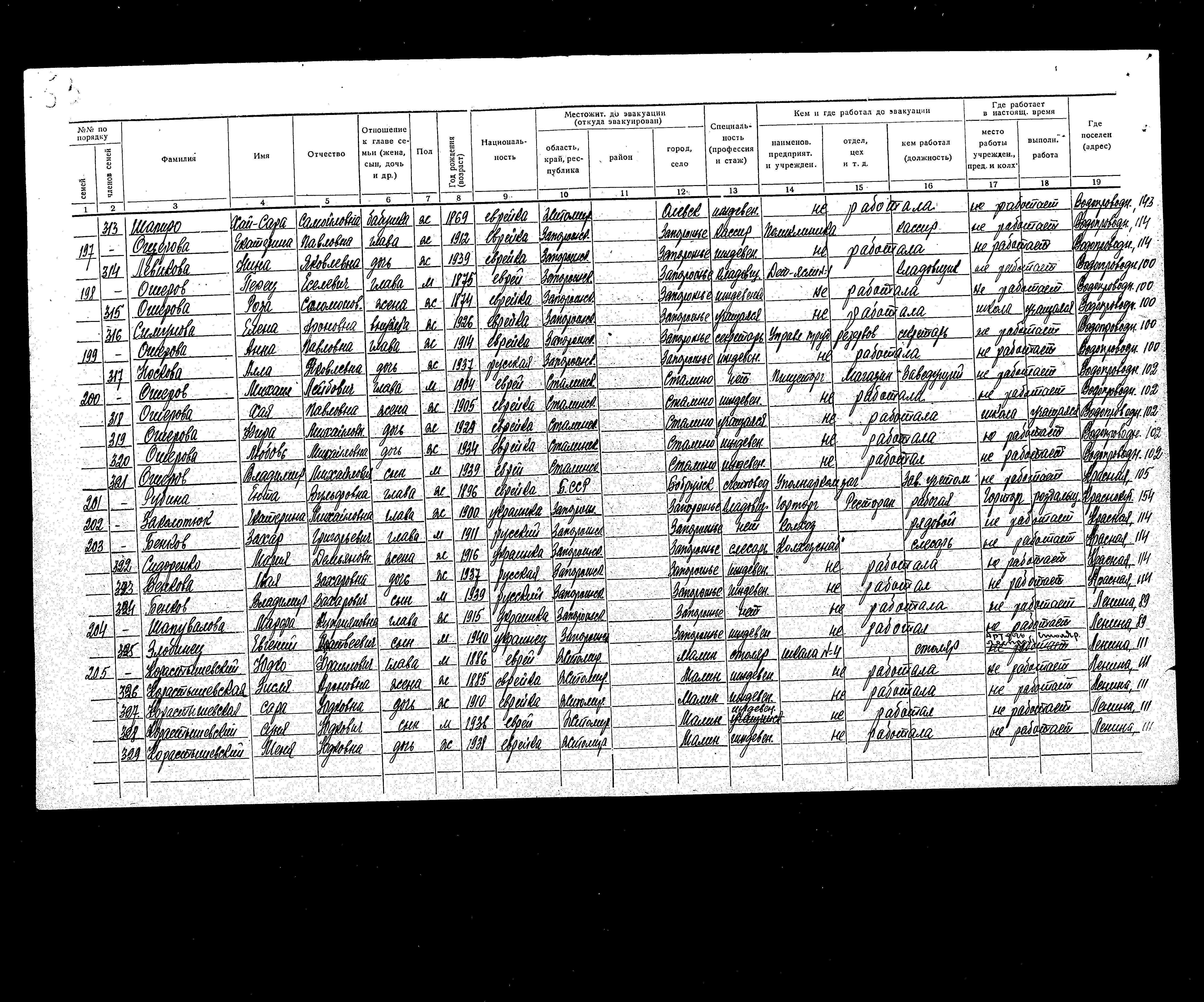 רשימת תושבים שפונו ל- Nevinnomyssk, שהוכנה בשנת 1942