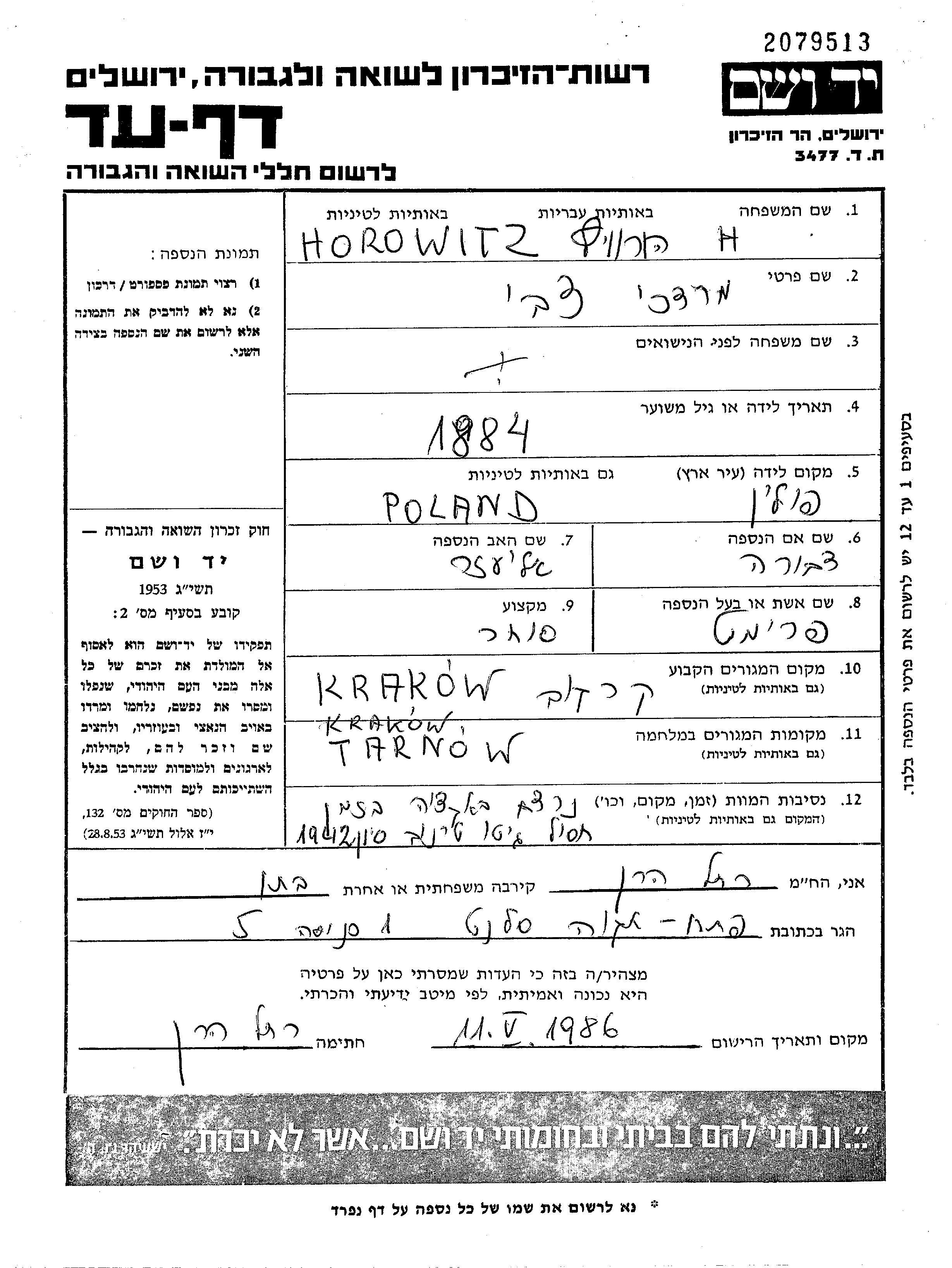 Horowitz צבי מרדכי 1884 Krakow, פולין דף-עד