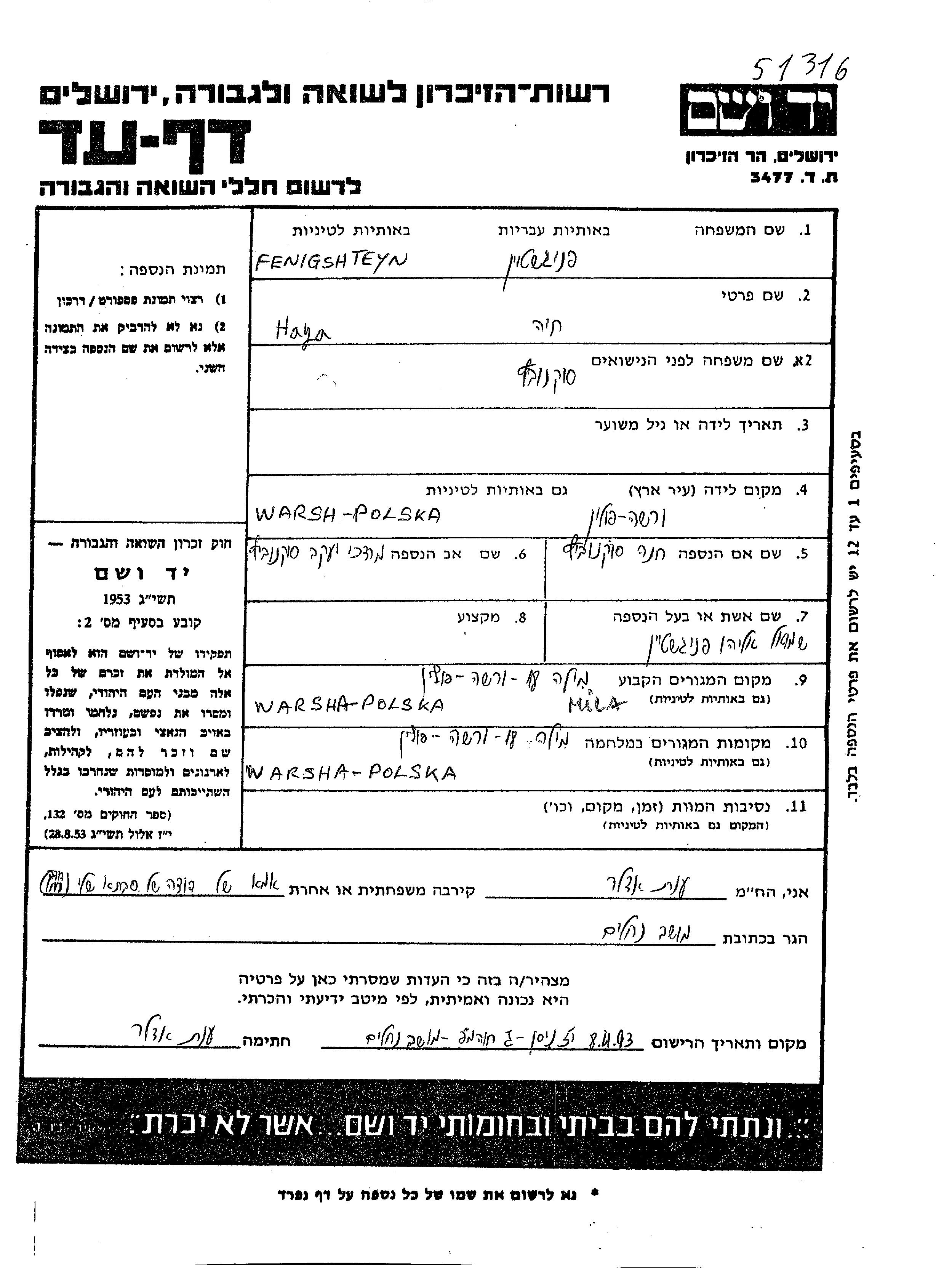 Fenigshteyn Haya Warszawa, פולין דף-עד