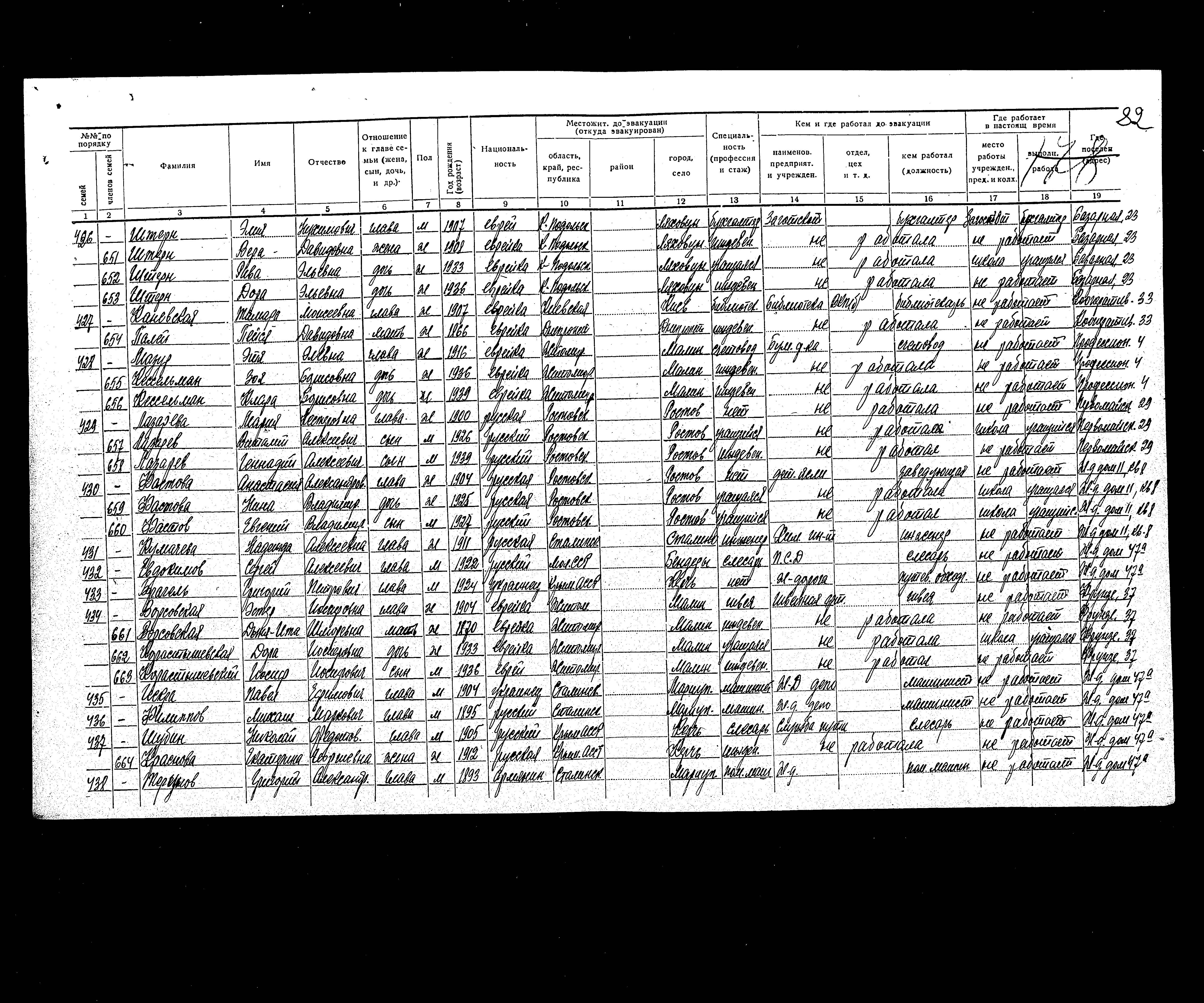 רשימת תושבים שפונו ל- Nevinnomyssk, שהוכנה בשנת 1942