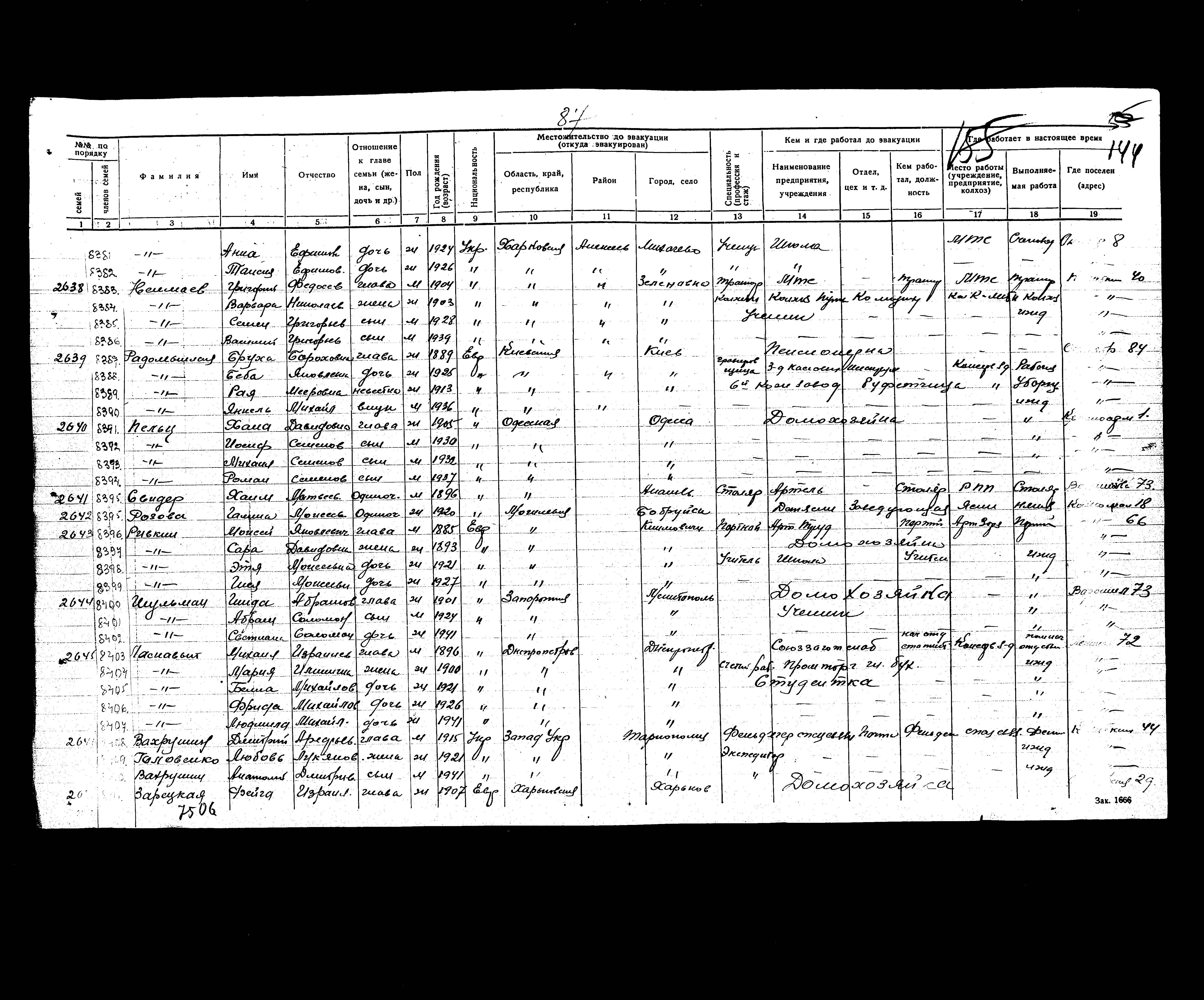 רשימת תושבים שפונו לנפת Medveditskoye, שהוכנה בשנת 1942