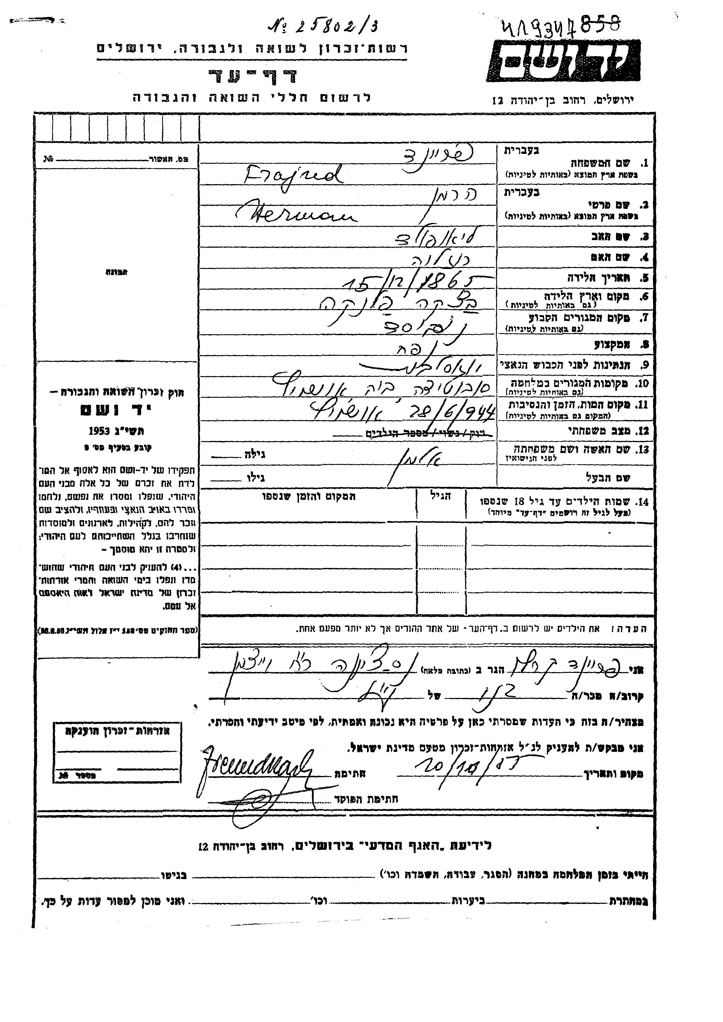 הרמן נרצח בשואה. מקום המוות: Auschwitz שבפולין בשנת 1944.