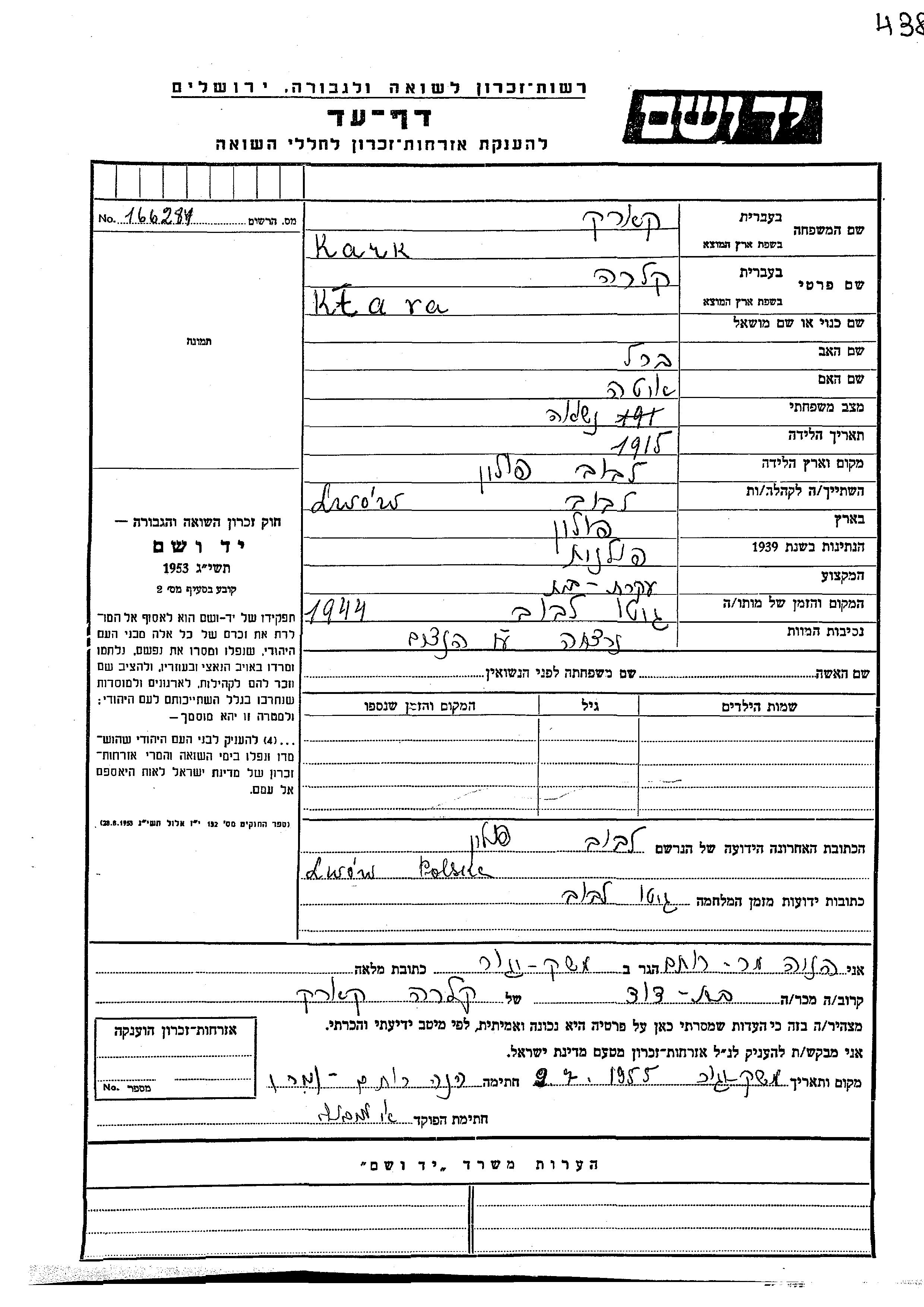 יד ושם - המפעל להנצחת השמות בדפי עד