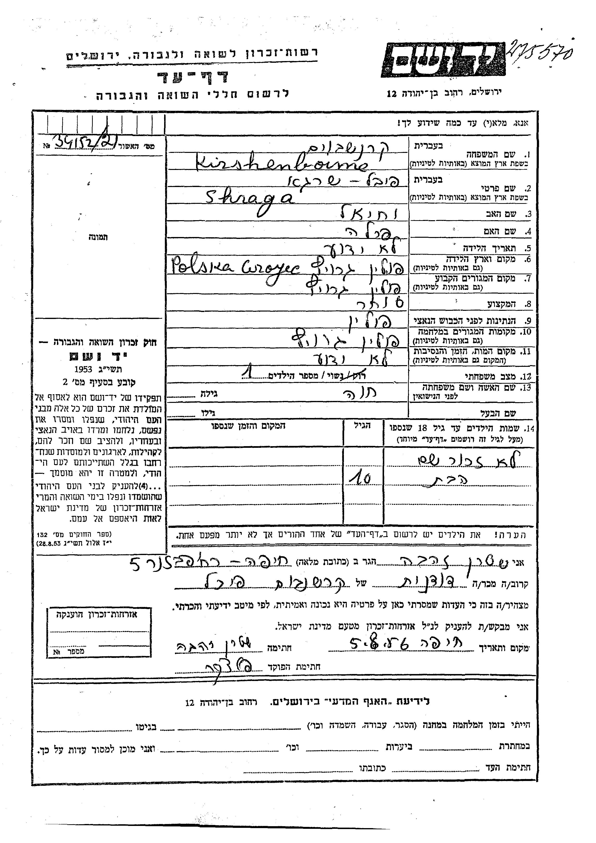 מאגר שמות קרבנות השואה