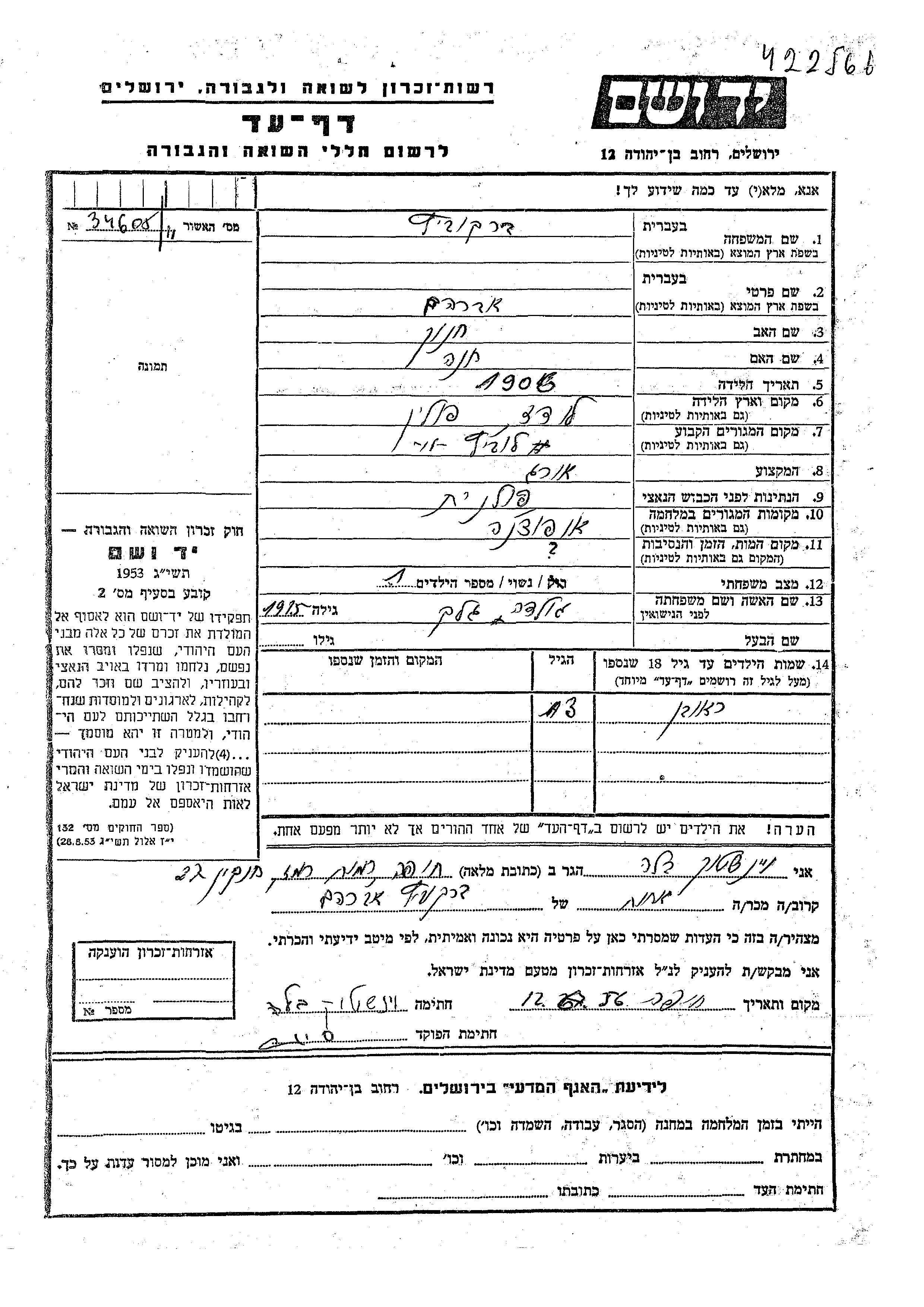 ברקוביץ אברהם 1906 Lodz, פולין דף-עד