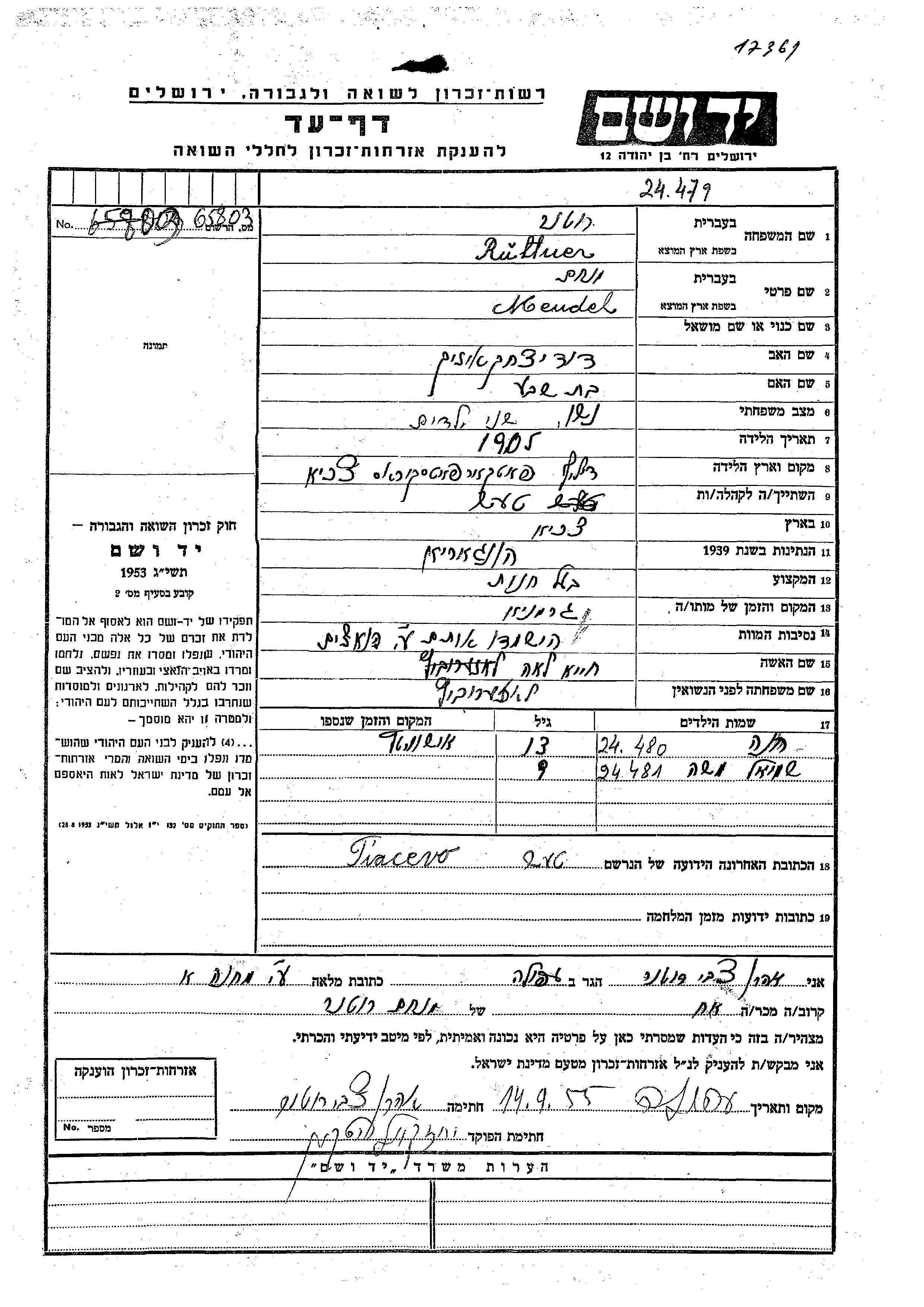 Ruttner רוטנר מנדל מנחם 1905 Tacovo, צ'כוסלובקיה דף-עד