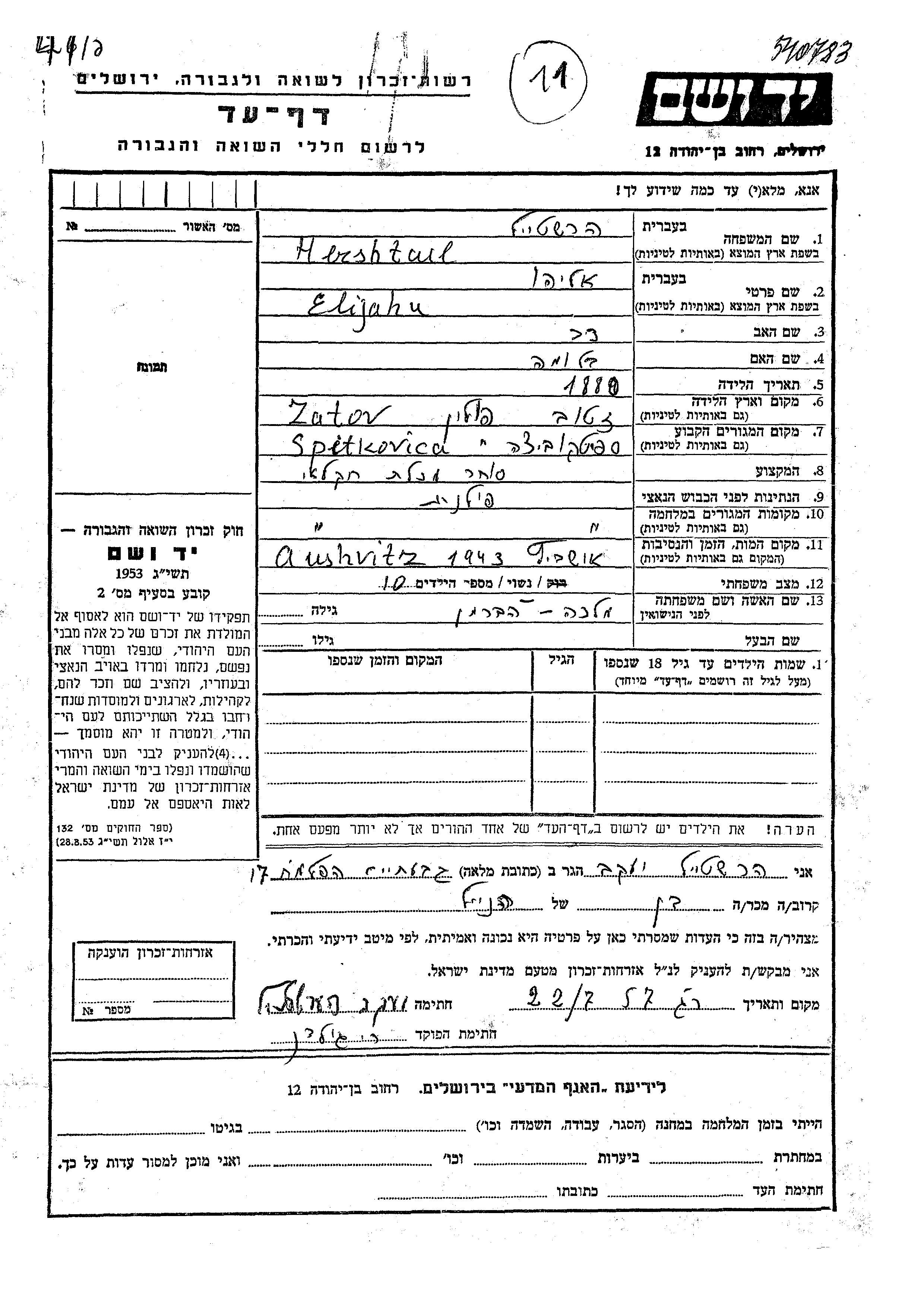 הרשטייל Elijahu 1880 Spytkowice, פולין דף-עד