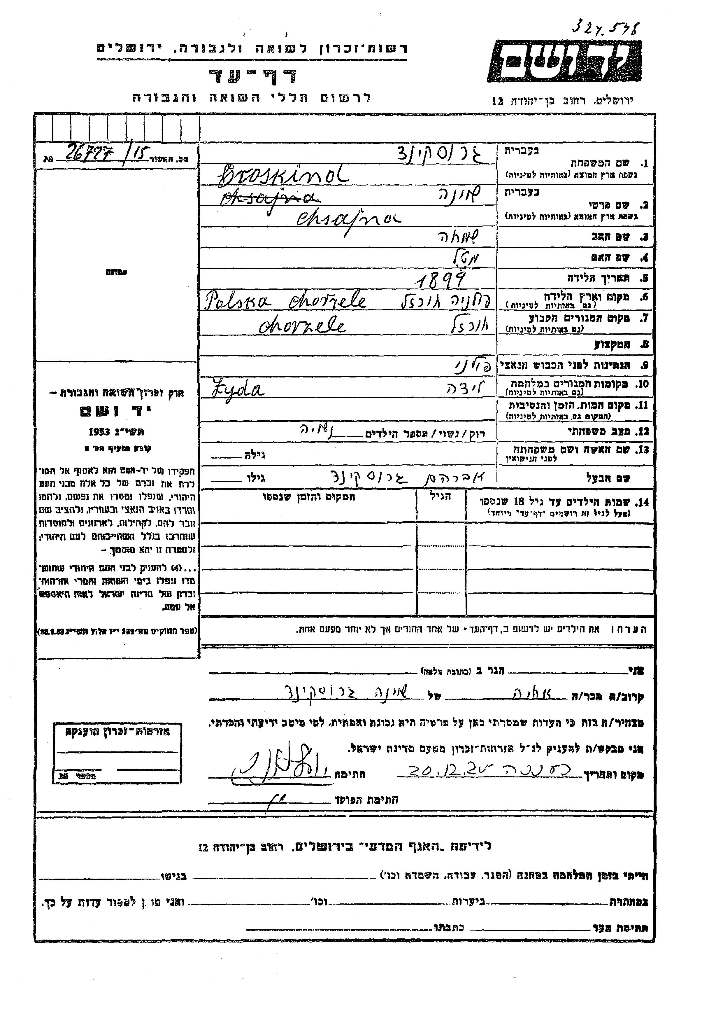 חיפוש שם מוסר דף העד. חיפוש לפי כל שם פרטי, כולל כינוי או שם חיבה
