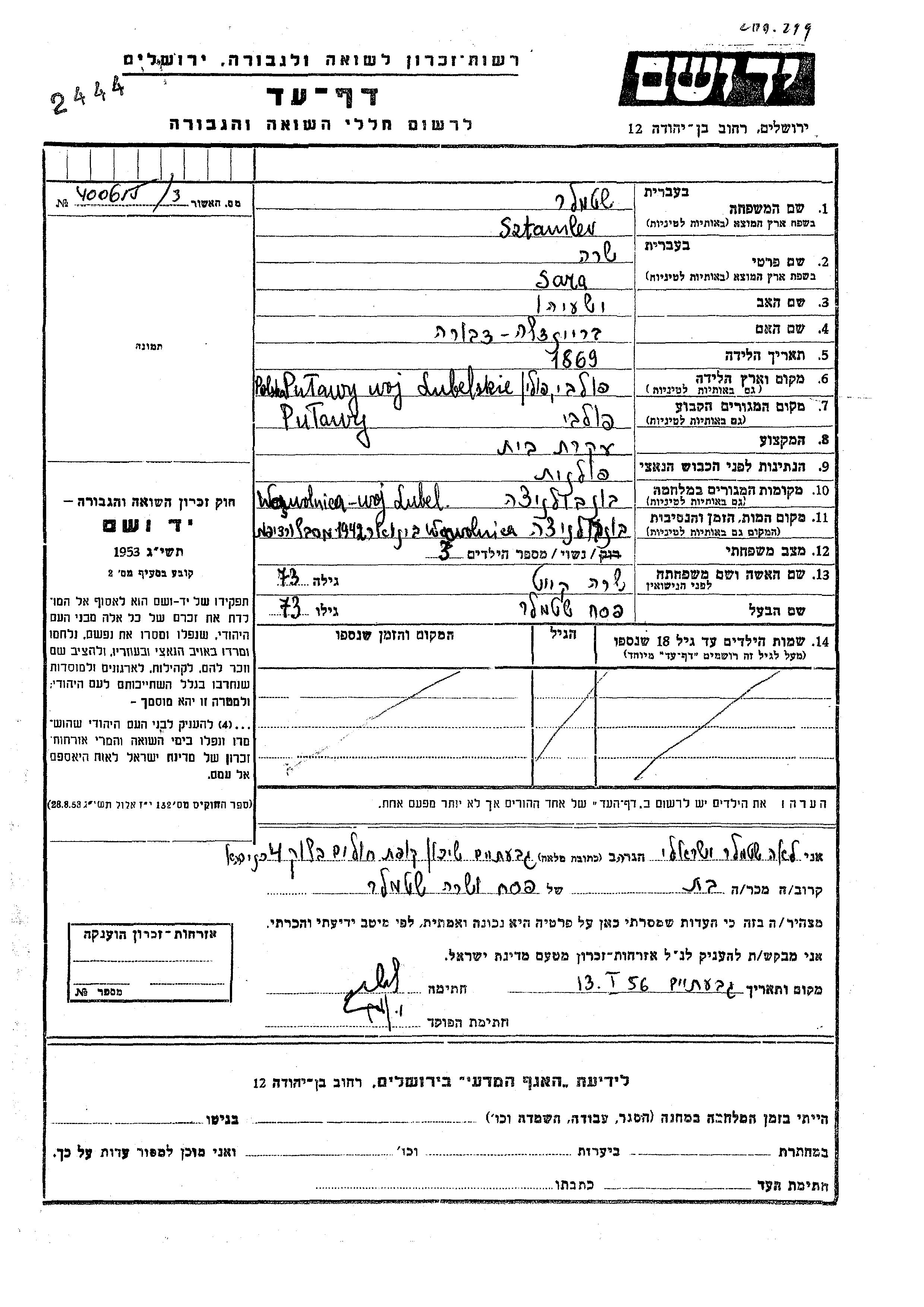 יד ושם - המפעל להנצחת השמות בדפי עד